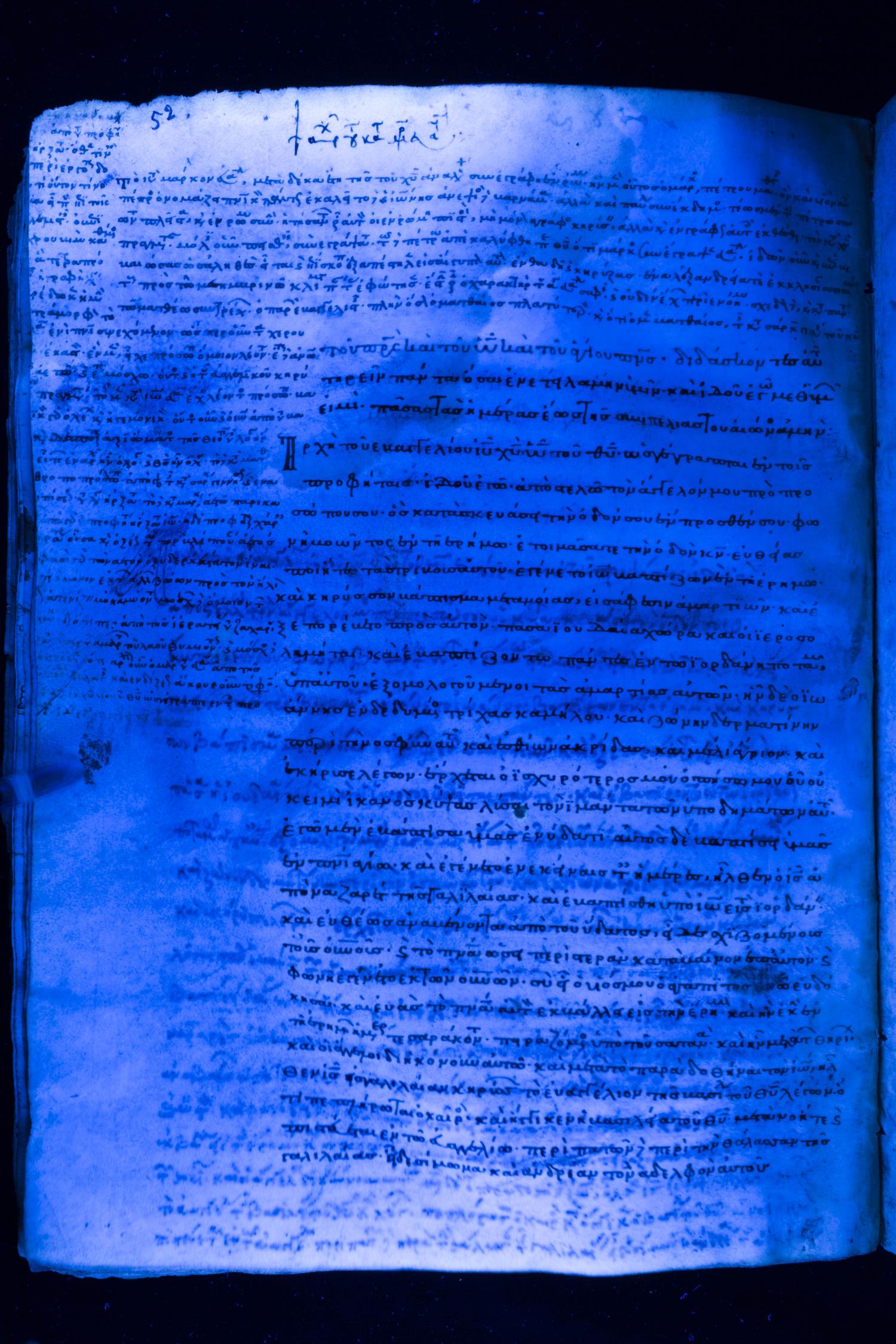 Tenth century minuscule of the Gospels with commentary on parchment; 153 leaves, 1 column, 20 lines per page. Images were taken at the National Library of Greece in Athens.