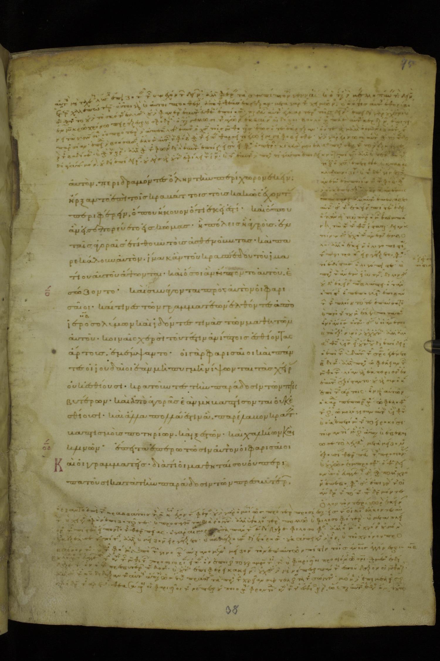 Tenth century minuscule of the Gospels with commentary on parchment; 153 leaves, 1 column, 20 lines per page. Images were taken at the National Library of Greece in Athens.