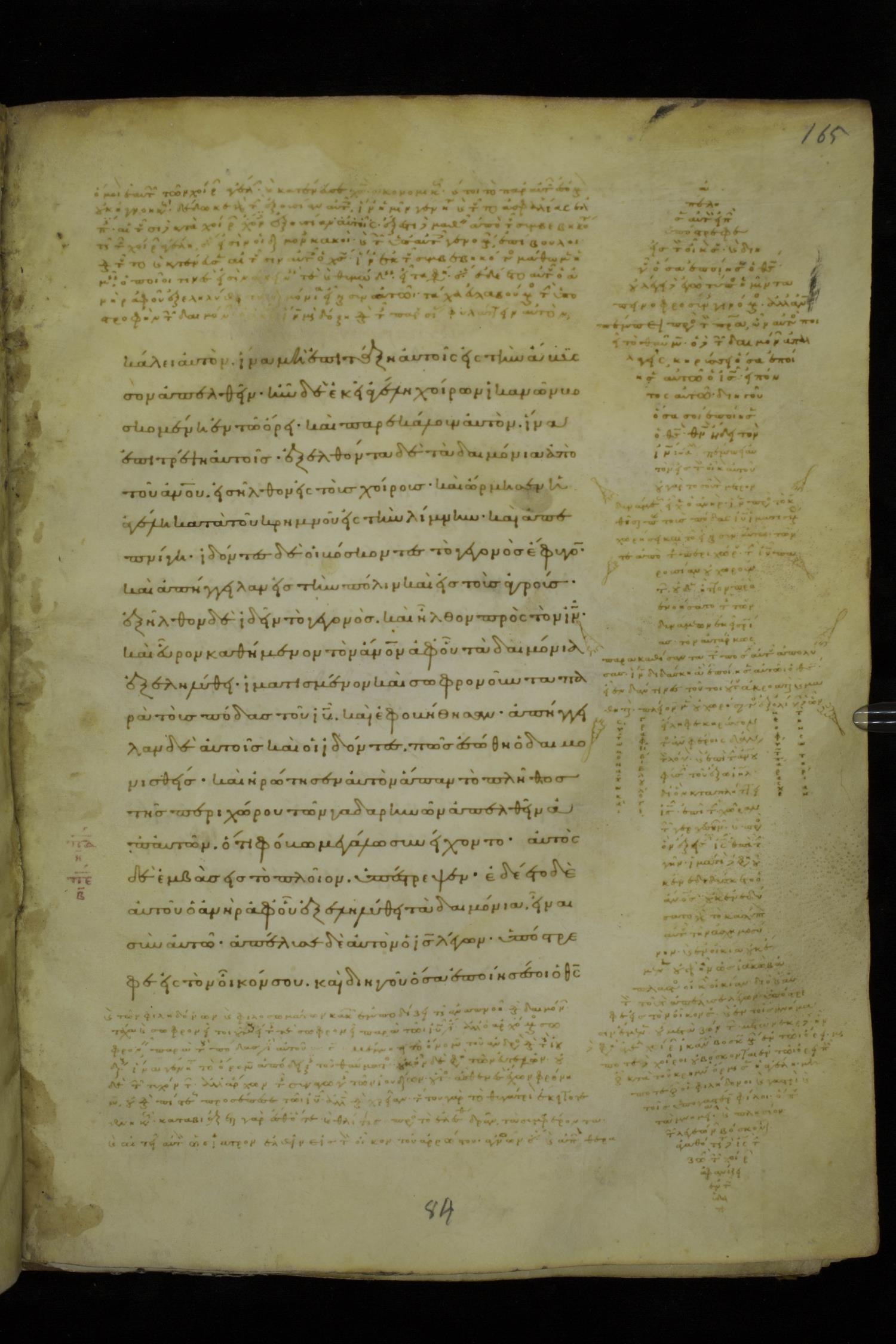 Tenth century minuscule of the Gospels with commentary on parchment; 153 leaves, 1 column, 20 lines per page. Images were taken at the National Library of Greece in Athens.