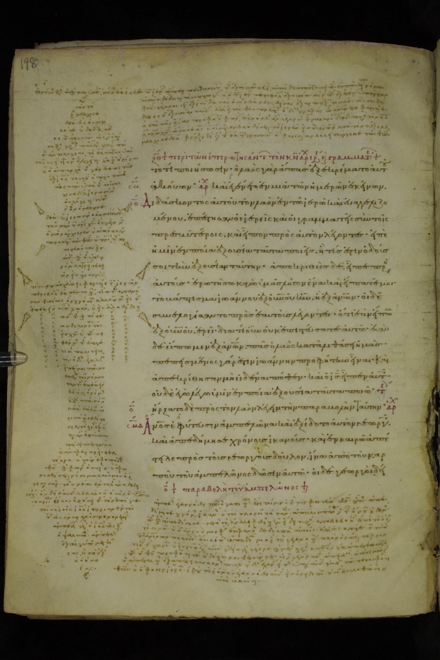 Tenth century minuscule of the Gospels with commentary on parchment; 153 leaves, 1 column, 20 lines per page. Images were taken at the National Library of Greece in Athens.