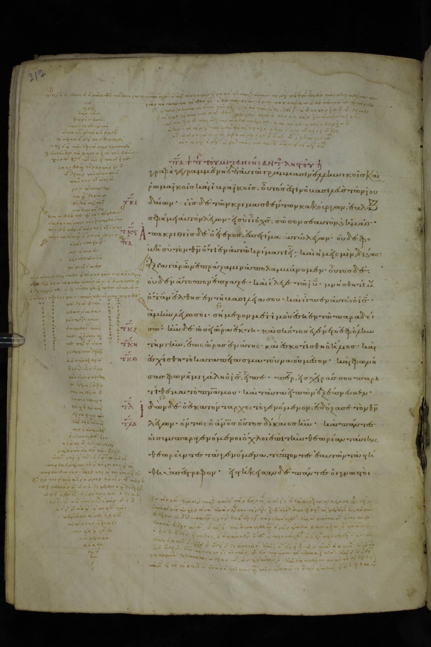 Tenth century minuscule of the Gospels with commentary on parchment; 153 leaves, 1 column, 20 lines per page. Images were taken at the National Library of Greece in Athens.