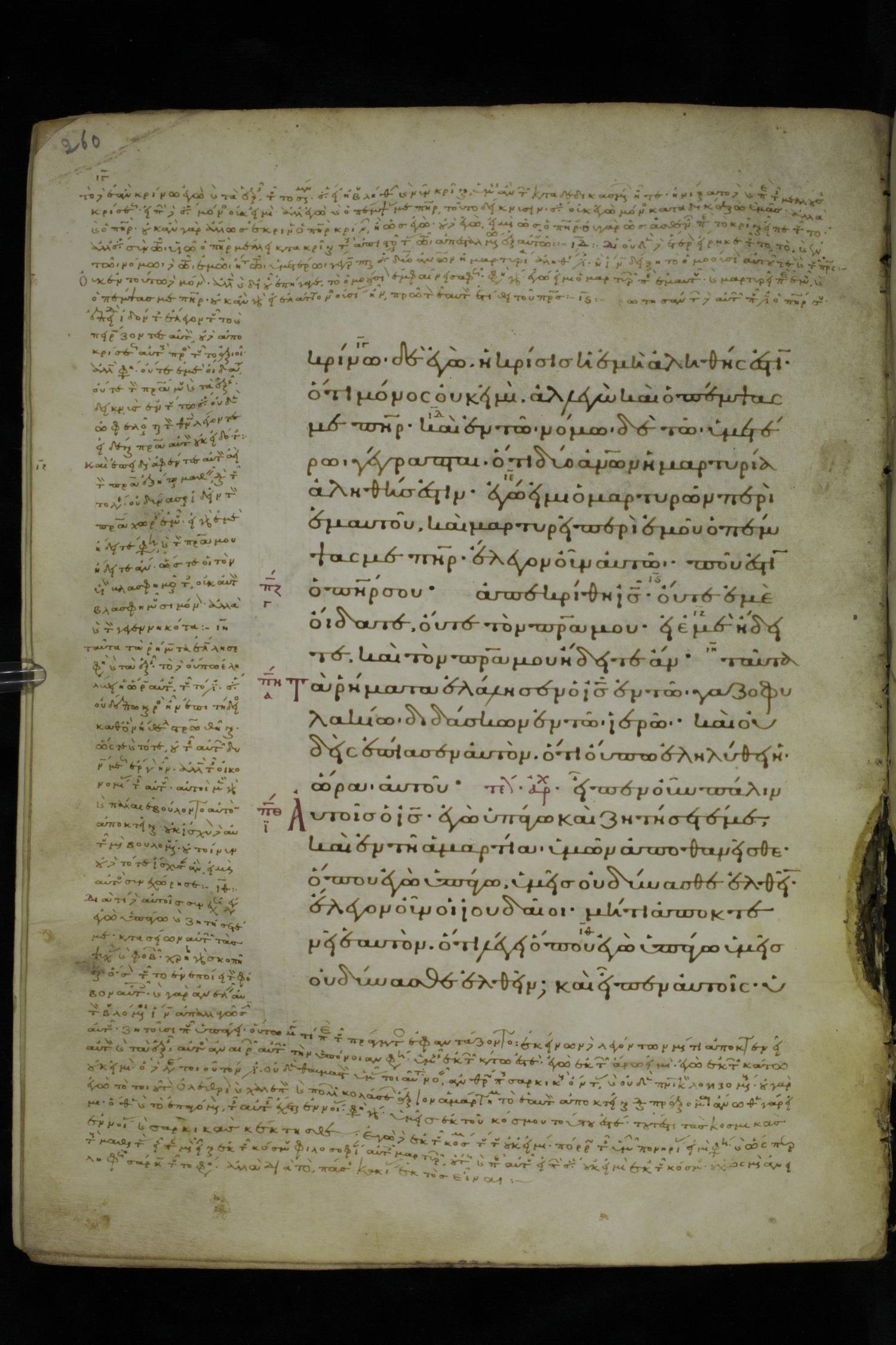 Tenth century minuscule of the Gospels with commentary on parchment; 153 leaves, 1 column, 20 lines per page. Images were taken at the National Library of Greece in Athens.