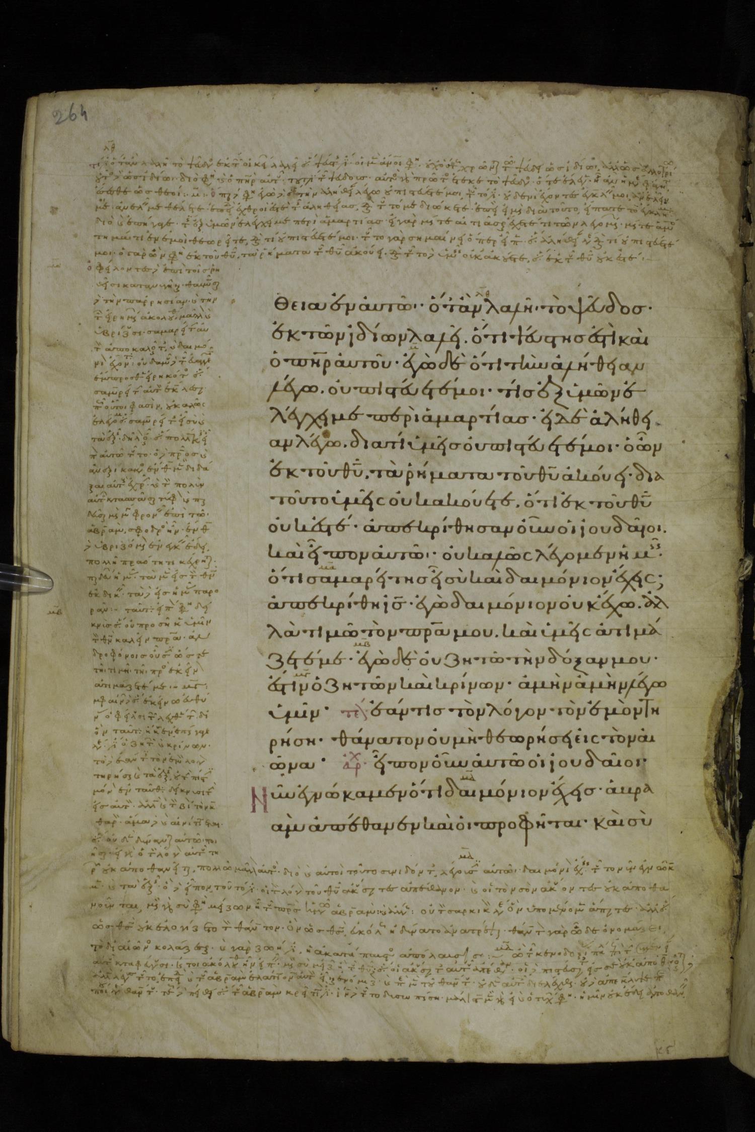 Tenth century minuscule of the Gospels with commentary on parchment; 153 leaves, 1 column, 20 lines per page. Images were taken at the National Library of Greece in Athens.