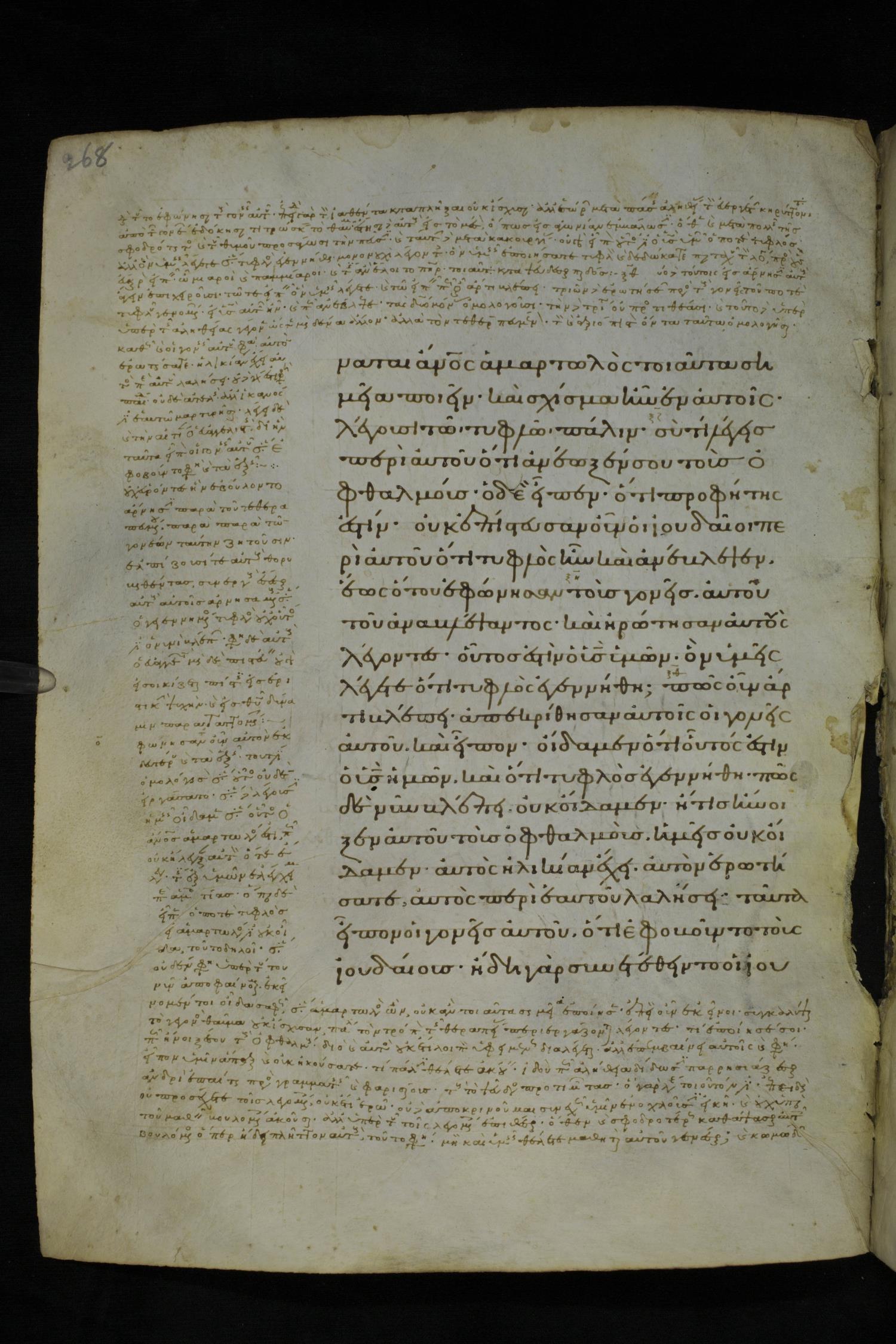 Tenth century minuscule of the Gospels with commentary on parchment; 153 leaves, 1 column, 20 lines per page. Images were taken at the National Library of Greece in Athens.