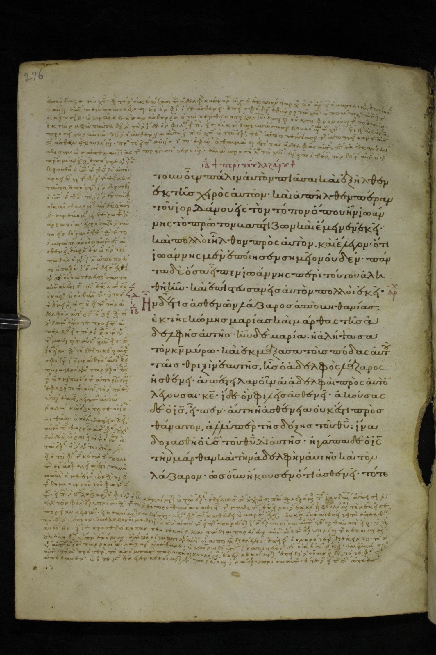Ἦν δέ τις ἀσθενῶν, Λάζαρος ἀπὸ Βηθανίας ἐκ τῆς κώμης Μαρίας καὶ Μάρθας τῆς ἀδελφῆς αὐτῆς.