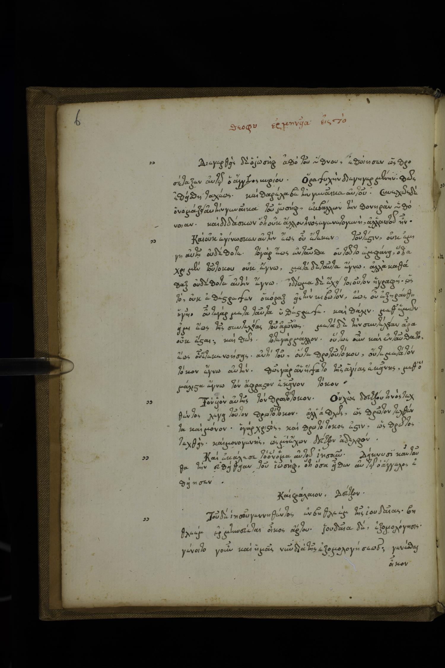 Fourteenth century minuscule of the Gospels with commentary on parchment; 390 leaves, 1-2 columns, 28-32 lines per columns. Images were taken at the National Library of Greece in Athens.