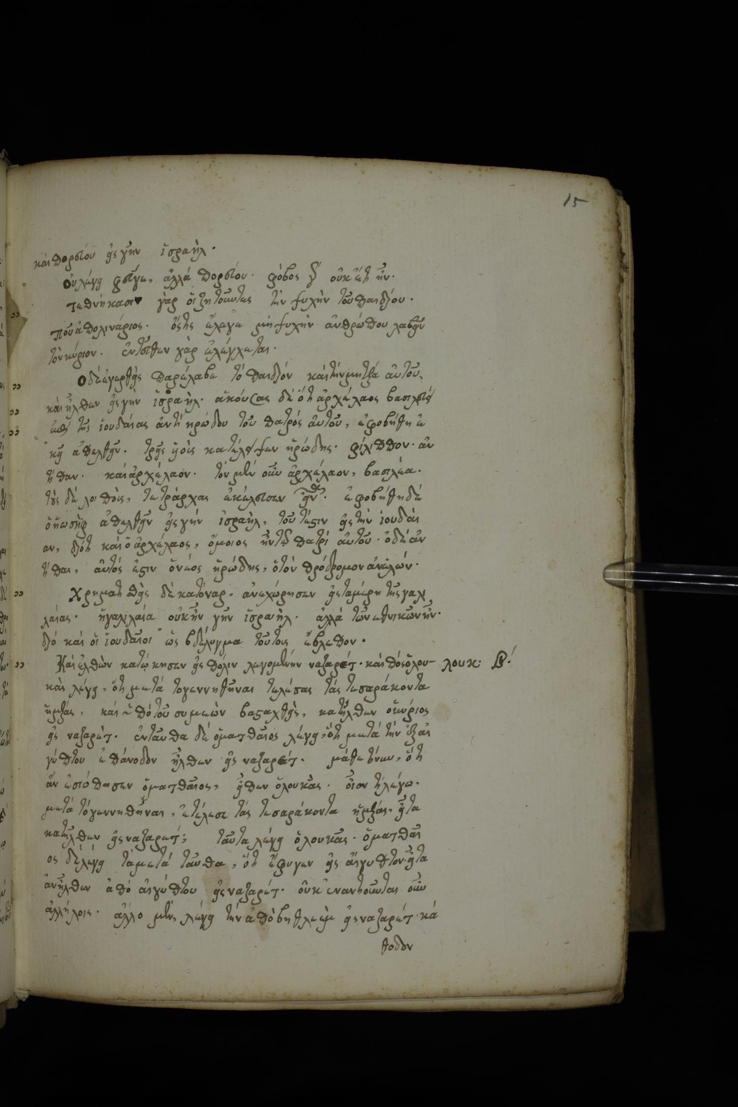 Fourteenth century minuscule of the Gospels with commentary on parchment; 390 leaves, 1-2 columns, 28-32 lines per columns. Images were taken at the National Library of Greece in Athens.