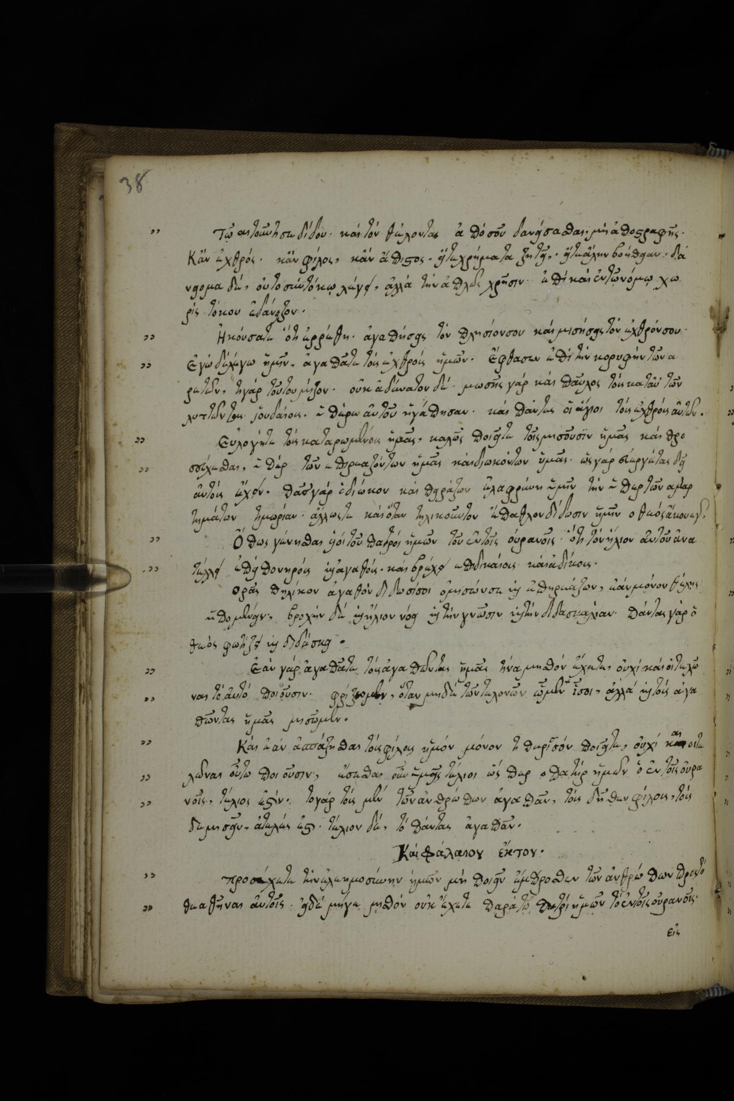 Fourteenth century minuscule of the Gospels with commentary on parchment; 390 leaves, 1-2 columns, 28-32 lines per columns. Images were taken at the National Library of Greece in Athens.