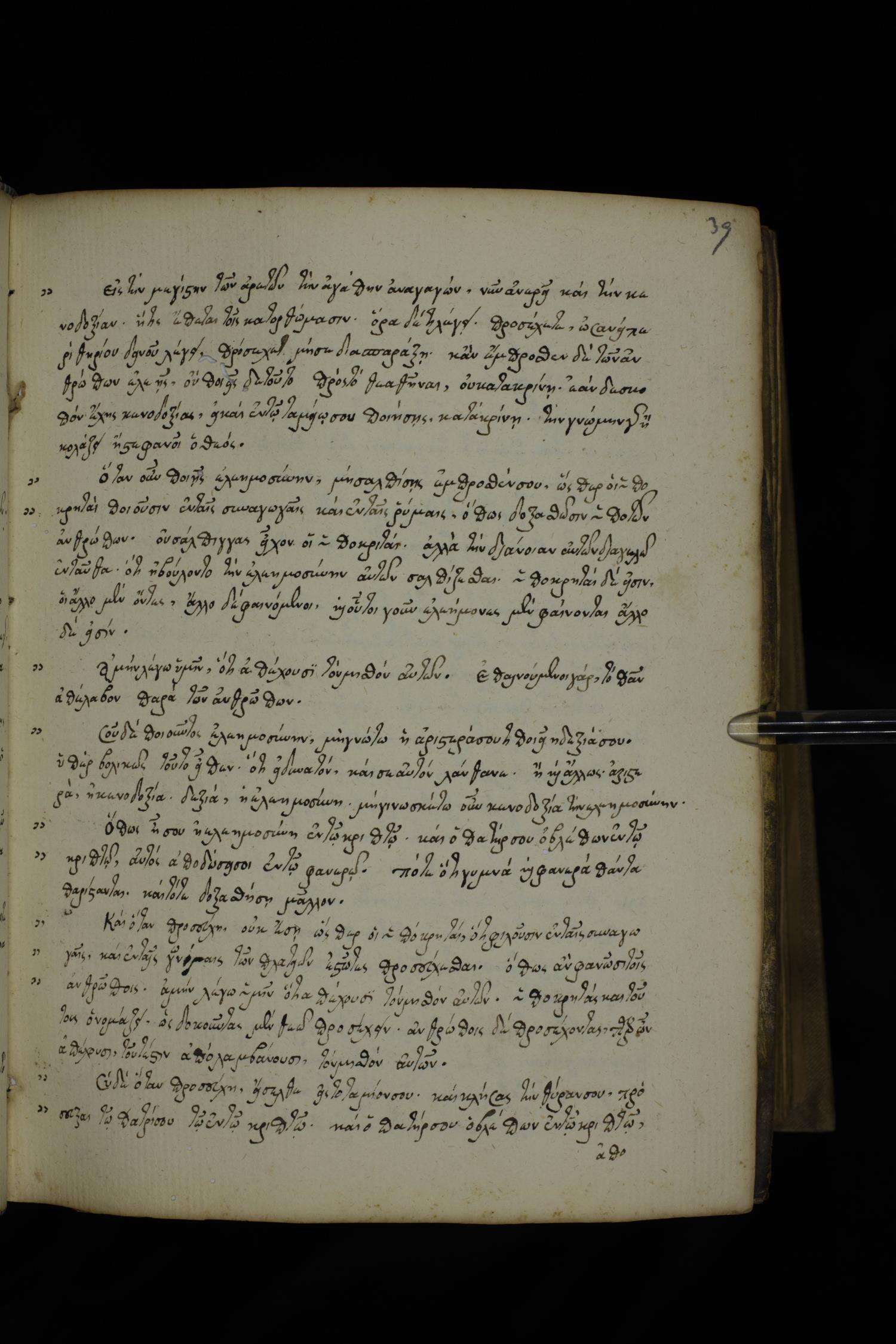 Fourteenth century minuscule of the Gospels with commentary on parchment; 390 leaves, 1-2 columns, 28-32 lines per columns. Images were taken at the National Library of Greece in Athens.