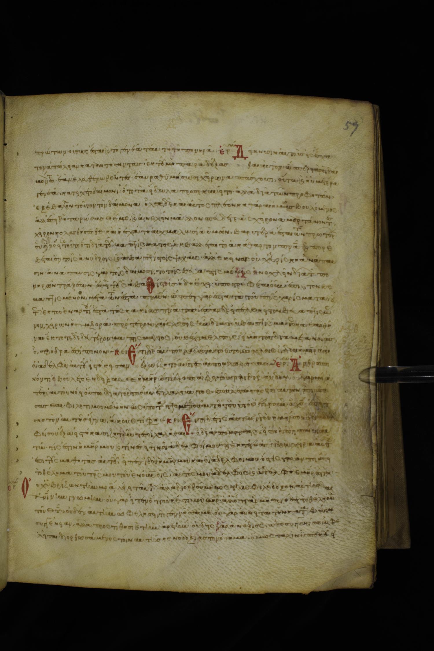 Fourteenth century minuscule of the Gospels with commentary on parchment; 390 leaves, 1-2 columns, 28-32 lines per columns. Images were taken at the National Library of Greece in Athens.