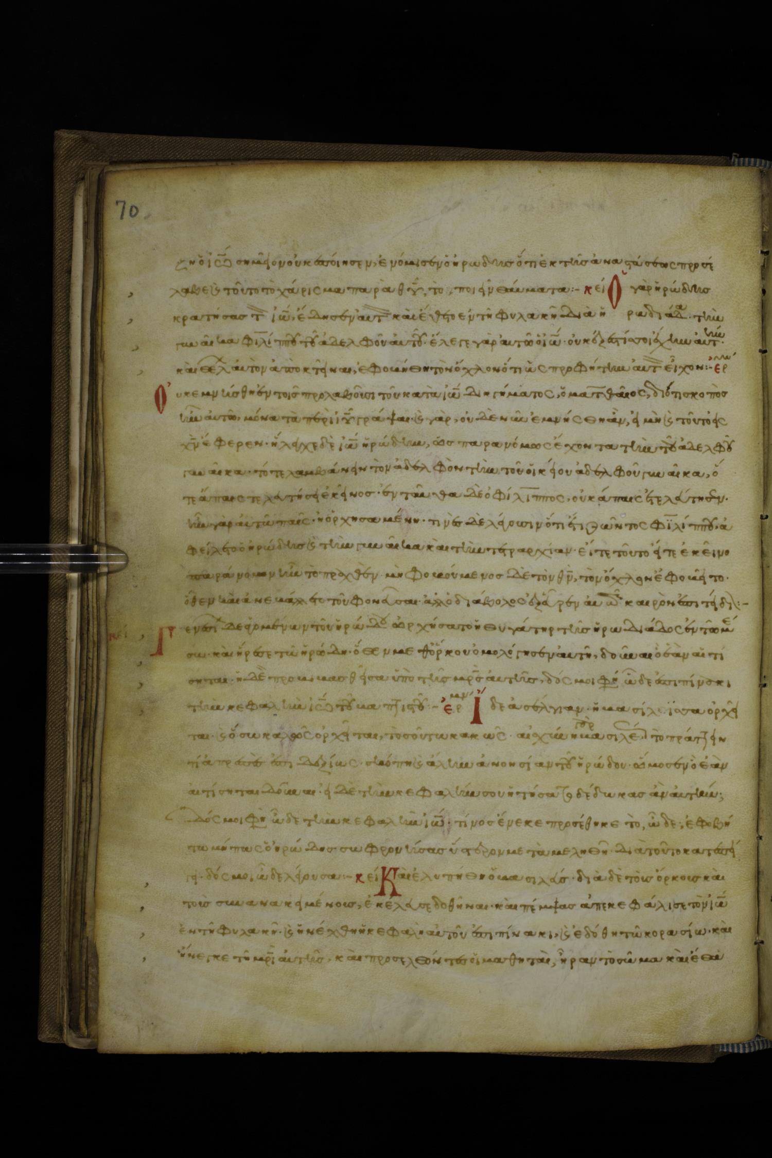 Fourteenth century minuscule of the Gospels with commentary on parchment; 390 leaves, 1-2 columns, 28-32 lines per columns. Images were taken at the National Library of Greece in Athens.