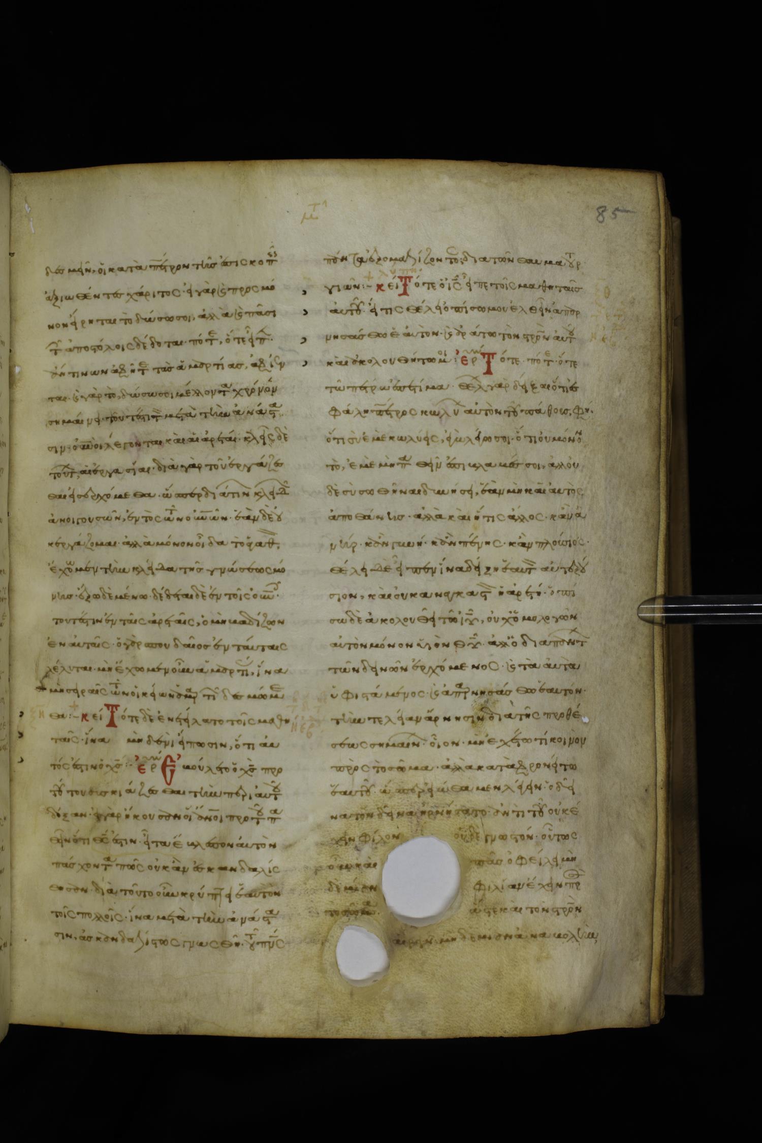 Fourteenth century minuscule of the Gospels with commentary on parchment; 390 leaves, 1-2 columns, 28-32 lines per columns. Images were taken at the National Library of Greece in Athens.