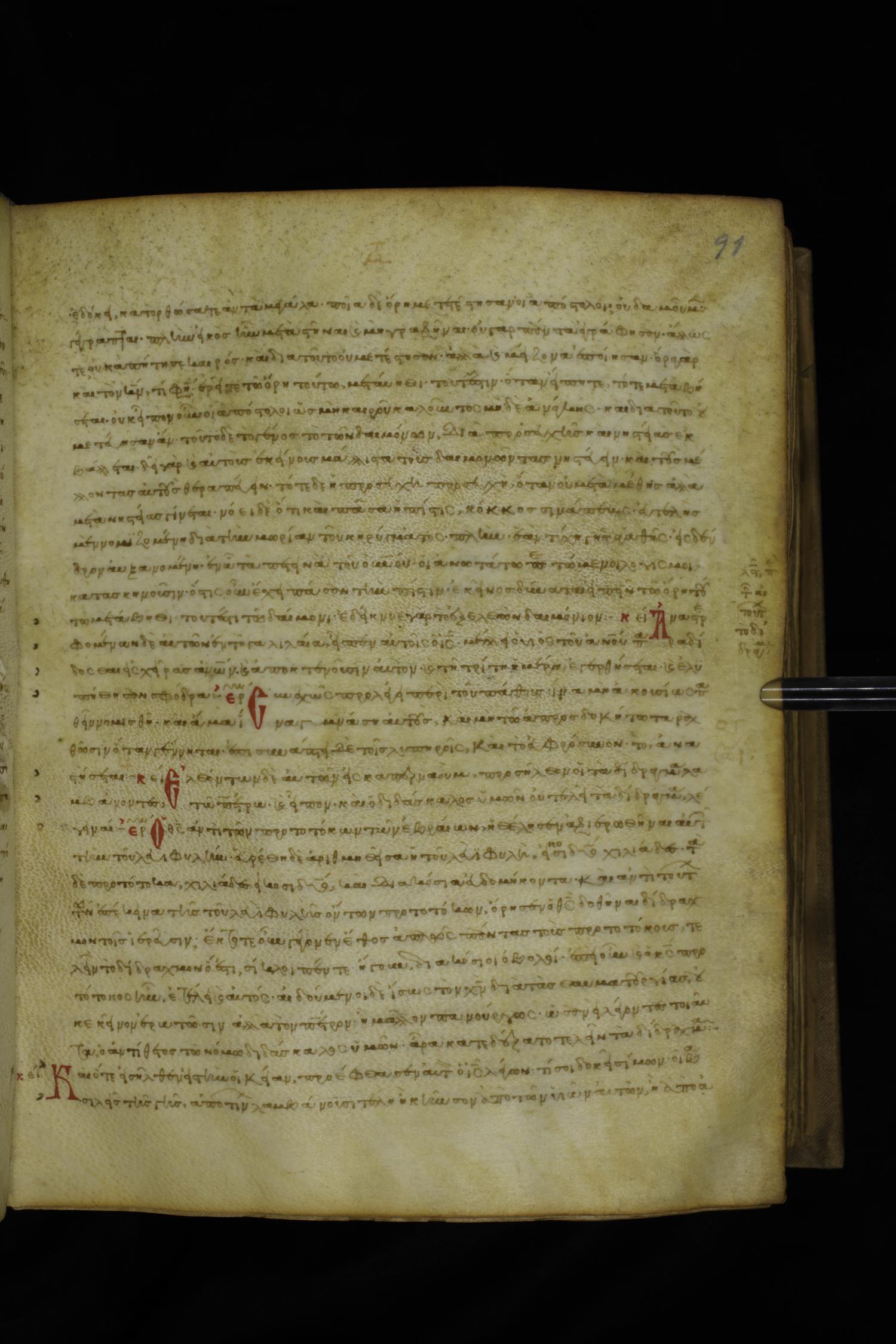 Fourteenth century minuscule of the Gospels with commentary on parchment; 390 leaves, 1-2 columns, 28-32 lines per columns. Images were taken at the National Library of Greece in Athens.
