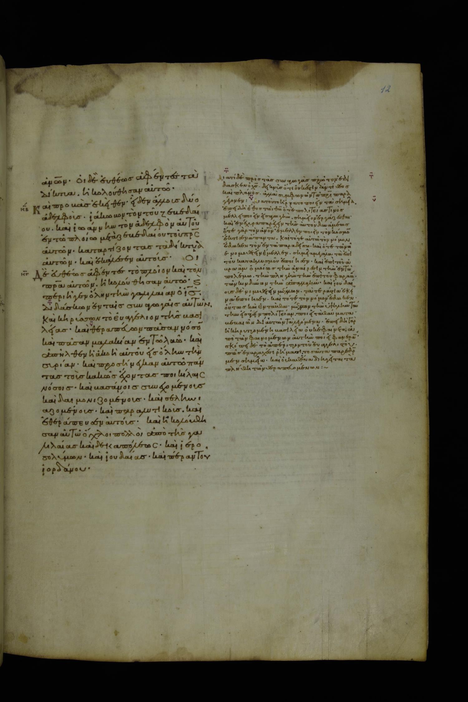 Tenth century minuscule of the Gospels with commentary; 285 leaves, 1 column, 4-34 lines per column. Images were taken at the National Library of Greece in Athens.