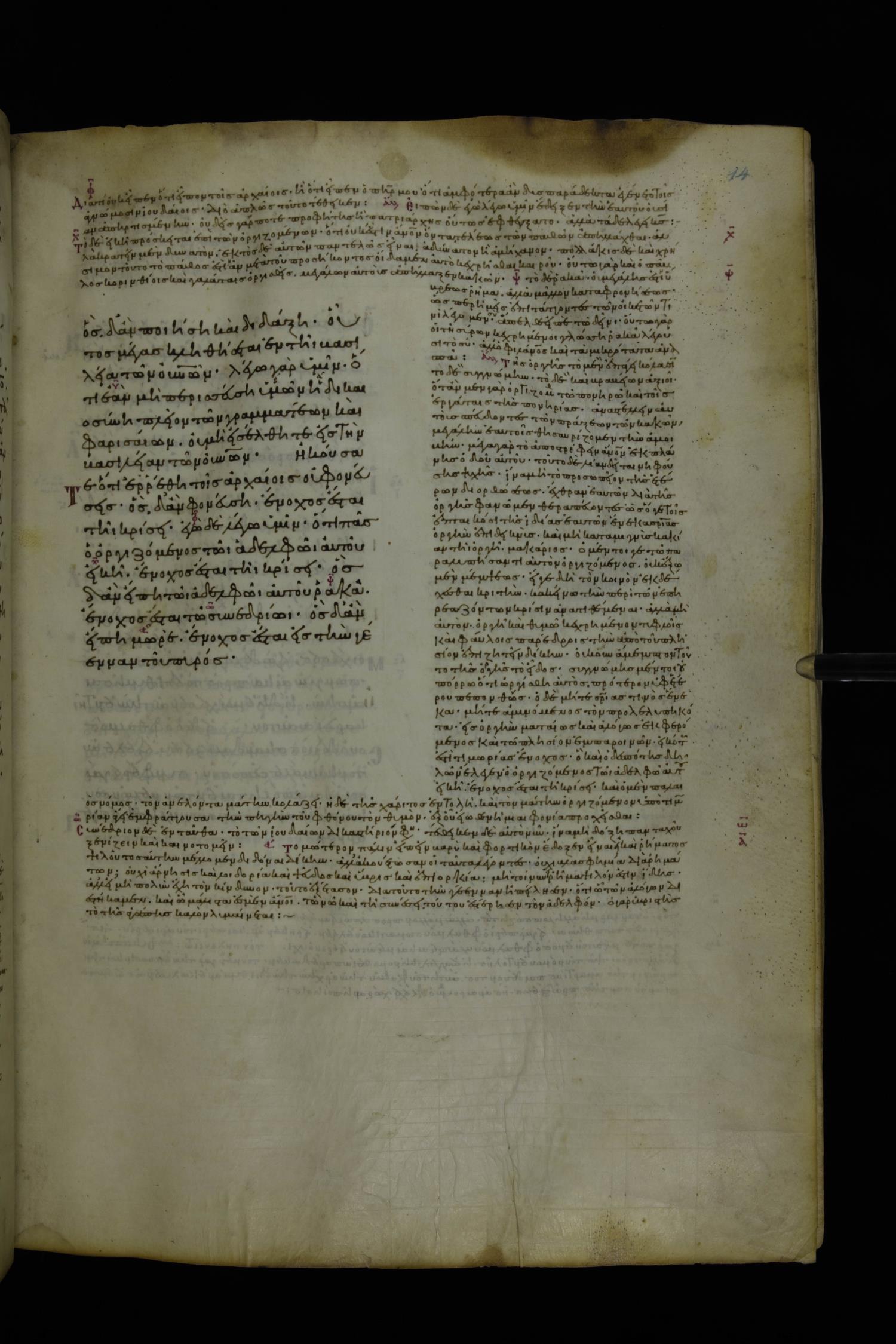 Tenth century minuscule of the Gospels with commentary; 285 leaves, 1 column, 4-34 lines per column. Images were taken at the National Library of Greece in Athens.