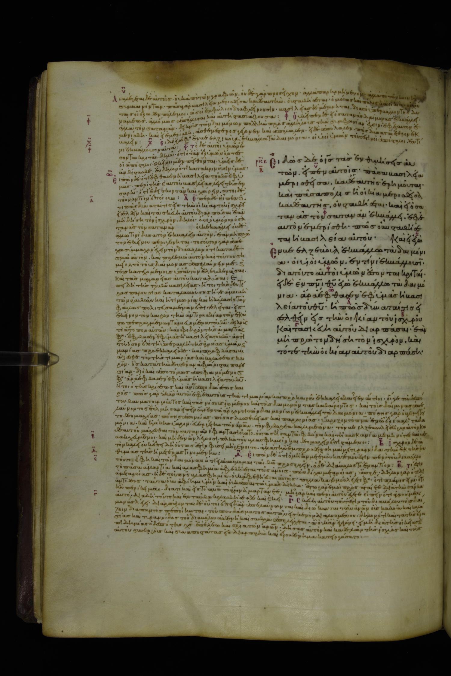 Tenth century minuscule of the Gospels with commentary; 285 leaves, 1 column, 4-34 lines per column. Images were taken at the National Library of Greece in Athens.