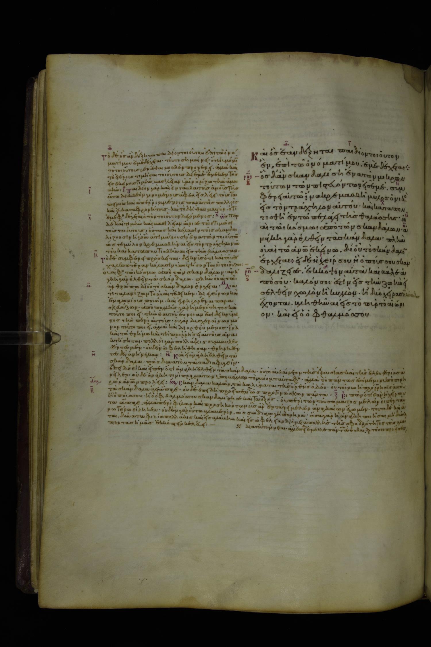 Tenth century minuscule of the Gospels with commentary; 285 leaves, 1 column, 4-34 lines per column. Images were taken at the National Library of Greece in Athens.
