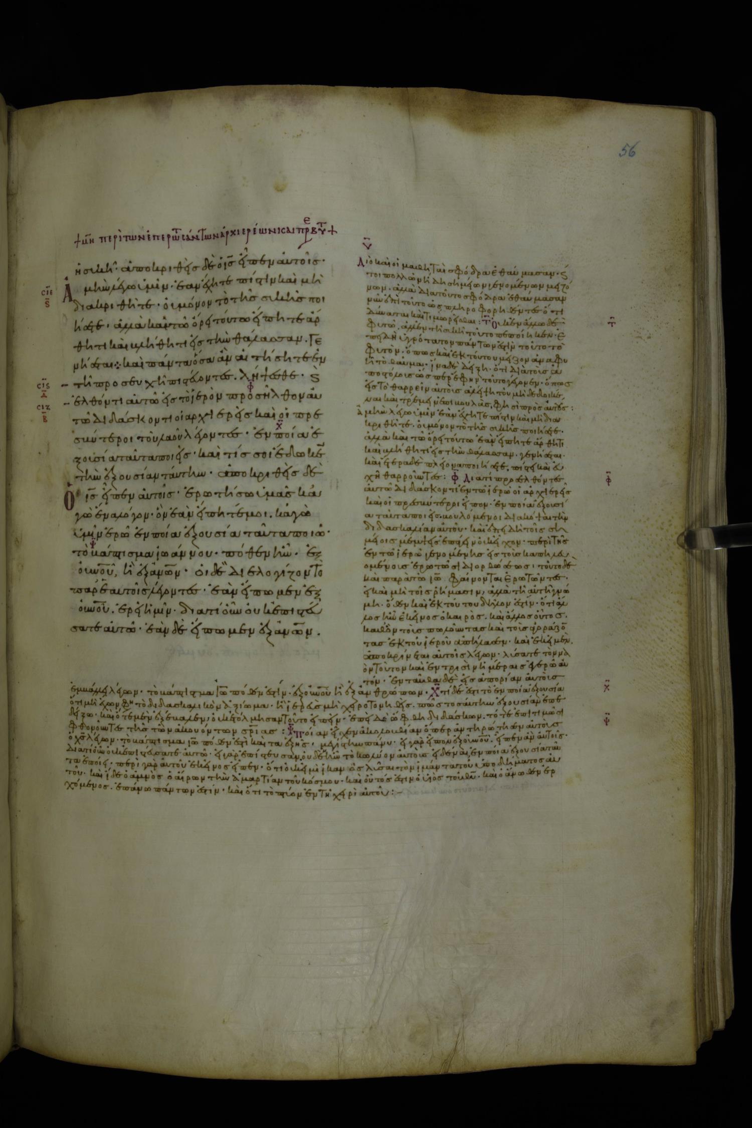 Tenth century minuscule of the Gospels with commentary; 285 leaves, 1 column, 4-34 lines per column. Images were taken at the National Library of Greece in Athens.