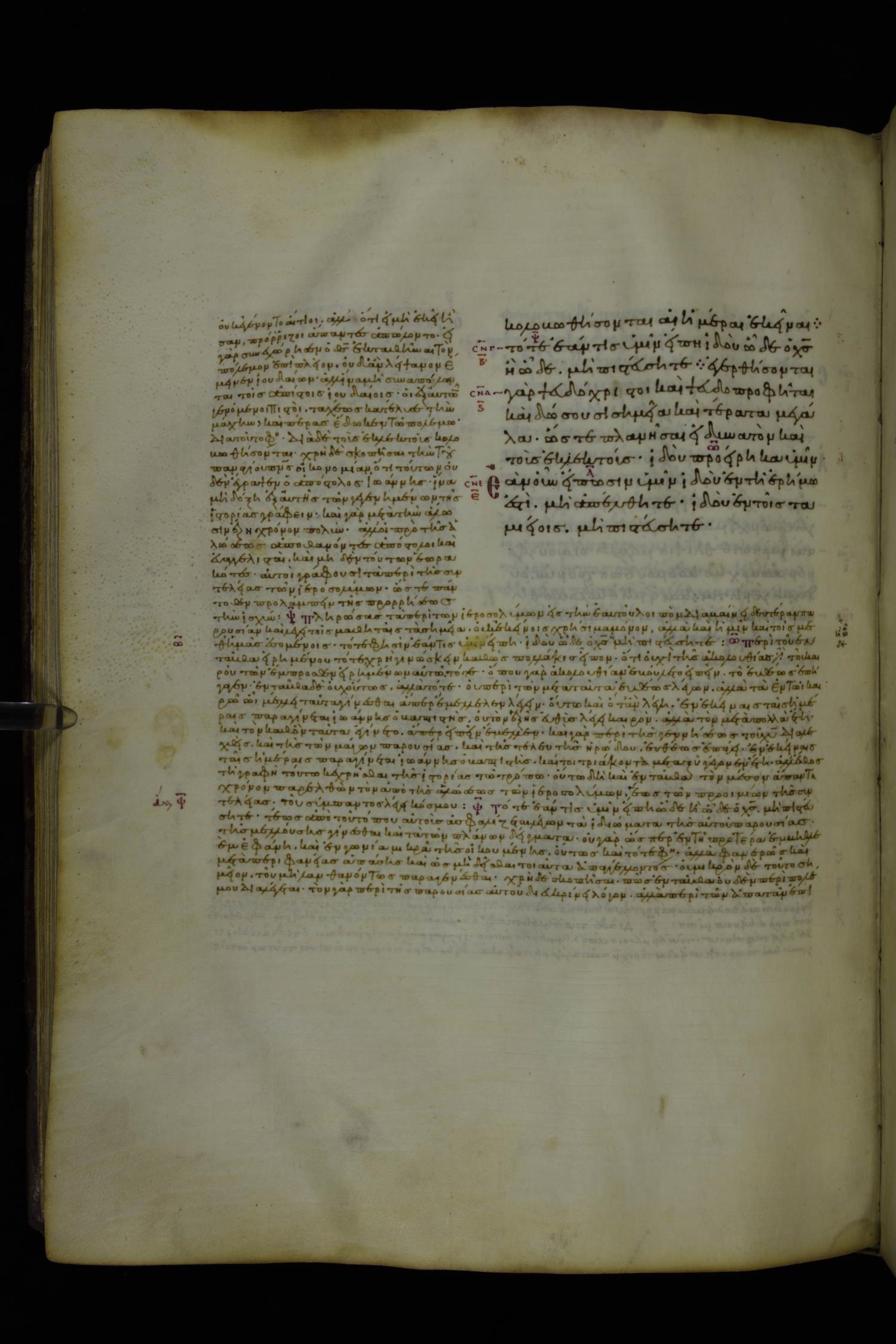 Tenth century minuscule of the Gospels with commentary; 285 leaves, 1 column, 4-34 lines per column. Images were taken at the National Library of Greece in Athens.