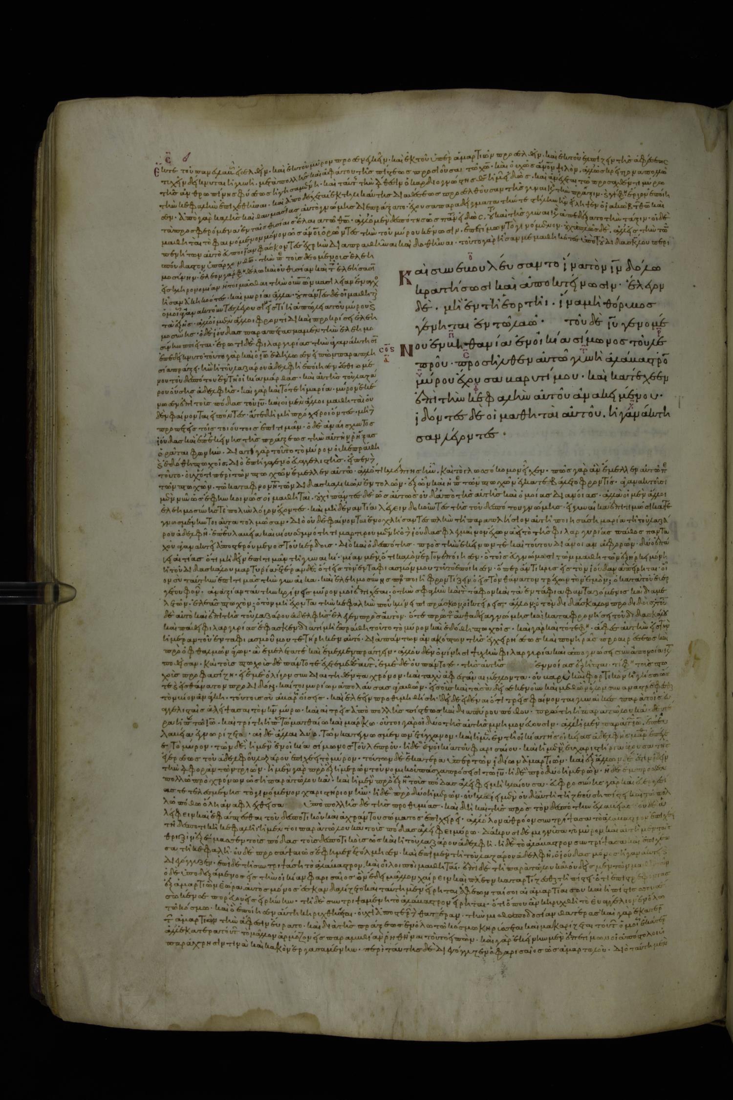Tenth century minuscule of the Gospels with commentary; 285 leaves, 1 column, 4-34 lines per column. Images were taken at the National Library of Greece in Athens.