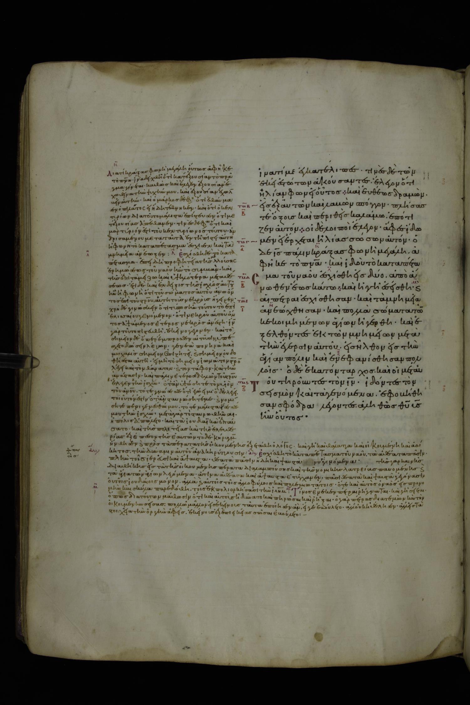 Tenth century minuscule of the Gospels with commentary; 285 leaves, 1 column, 4-34 lines per column. Images were taken at the National Library of Greece in Athens.