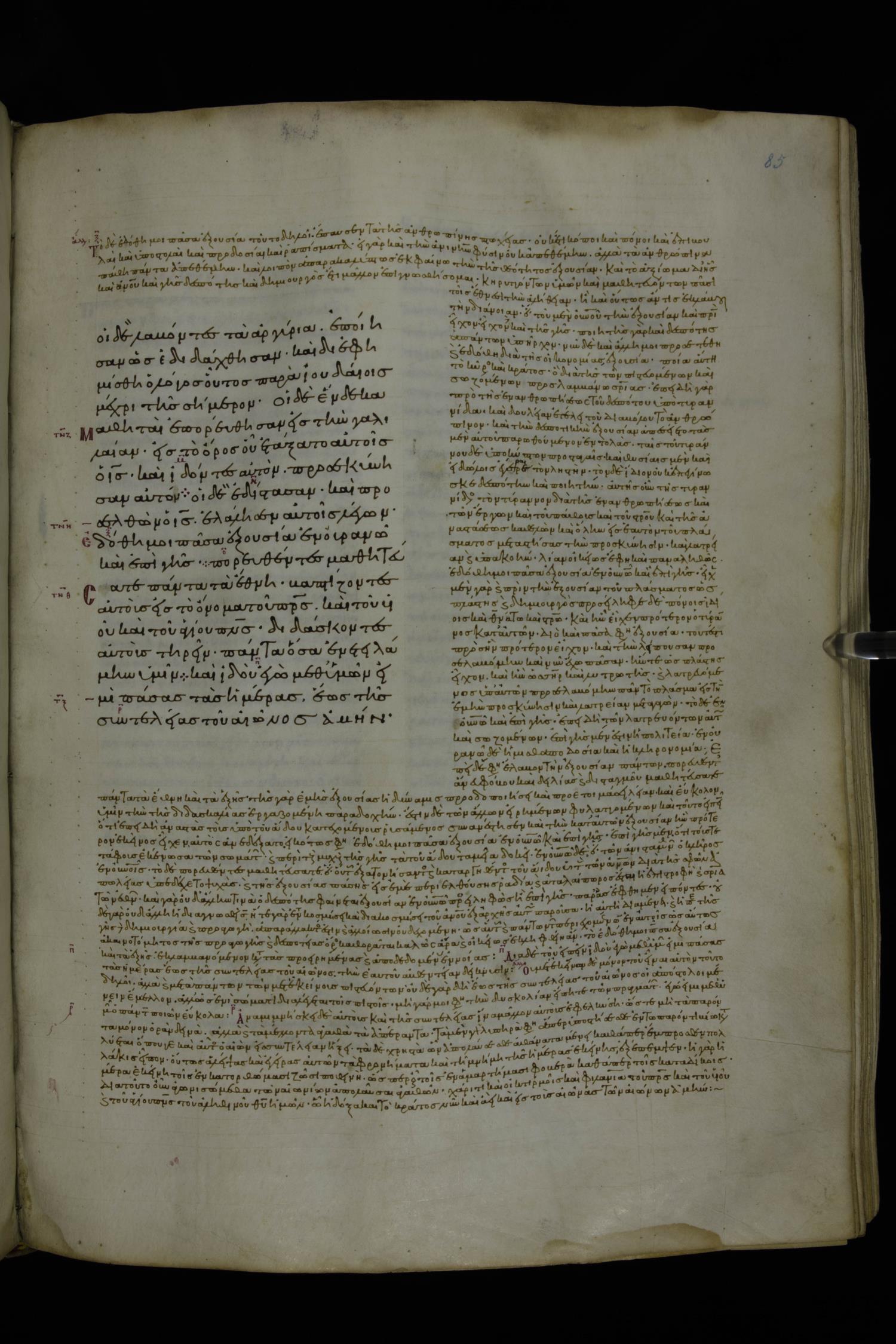 Tenth century minuscule of the Gospels with commentary; 285 leaves, 1 column, 4-34 lines per column. Images were taken at the National Library of Greece in Athens.