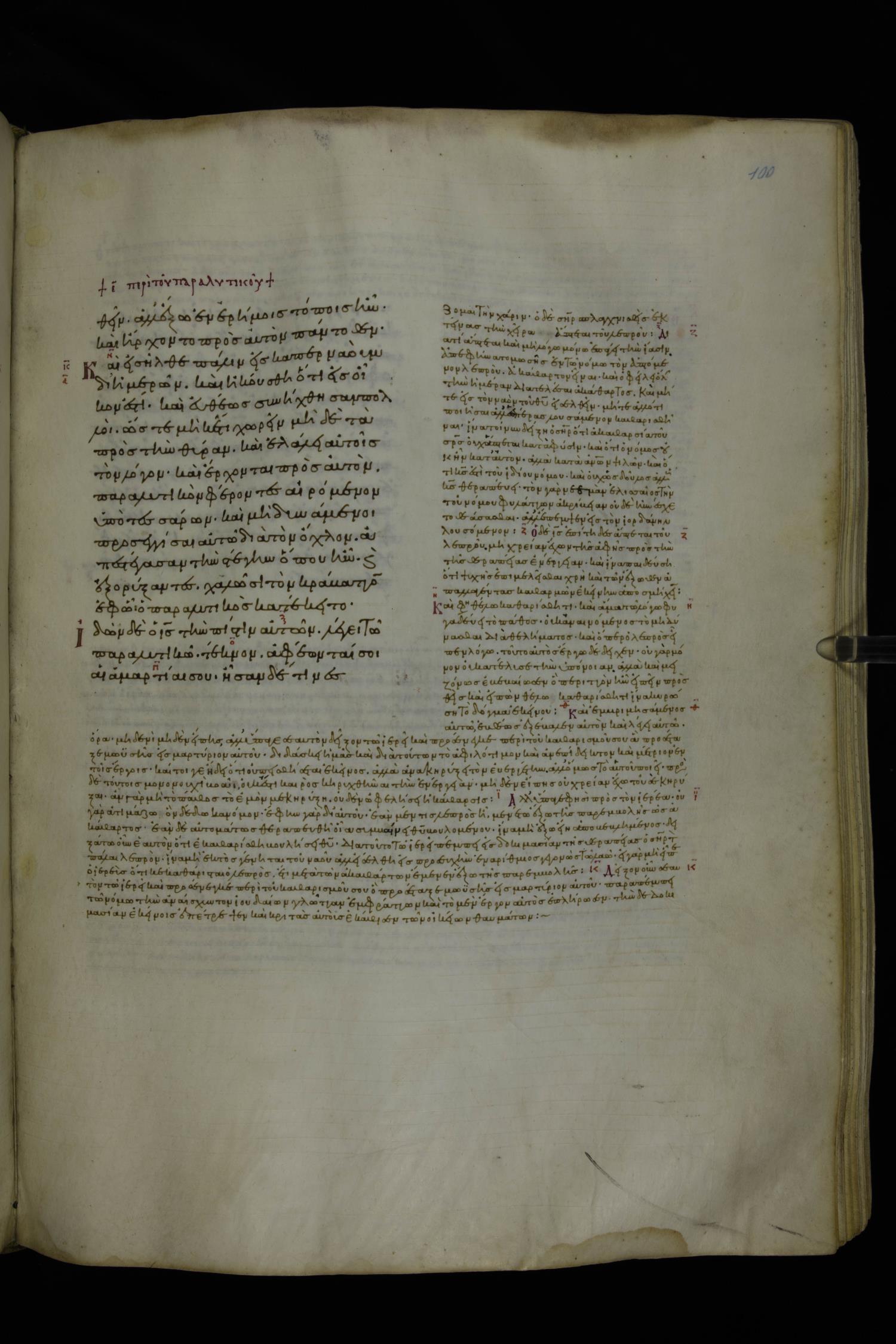 Tenth century minuscule of the Gospels with commentary; 285 leaves, 1 column, 4-34 lines per column. Images were taken at the National Library of Greece in Athens.
