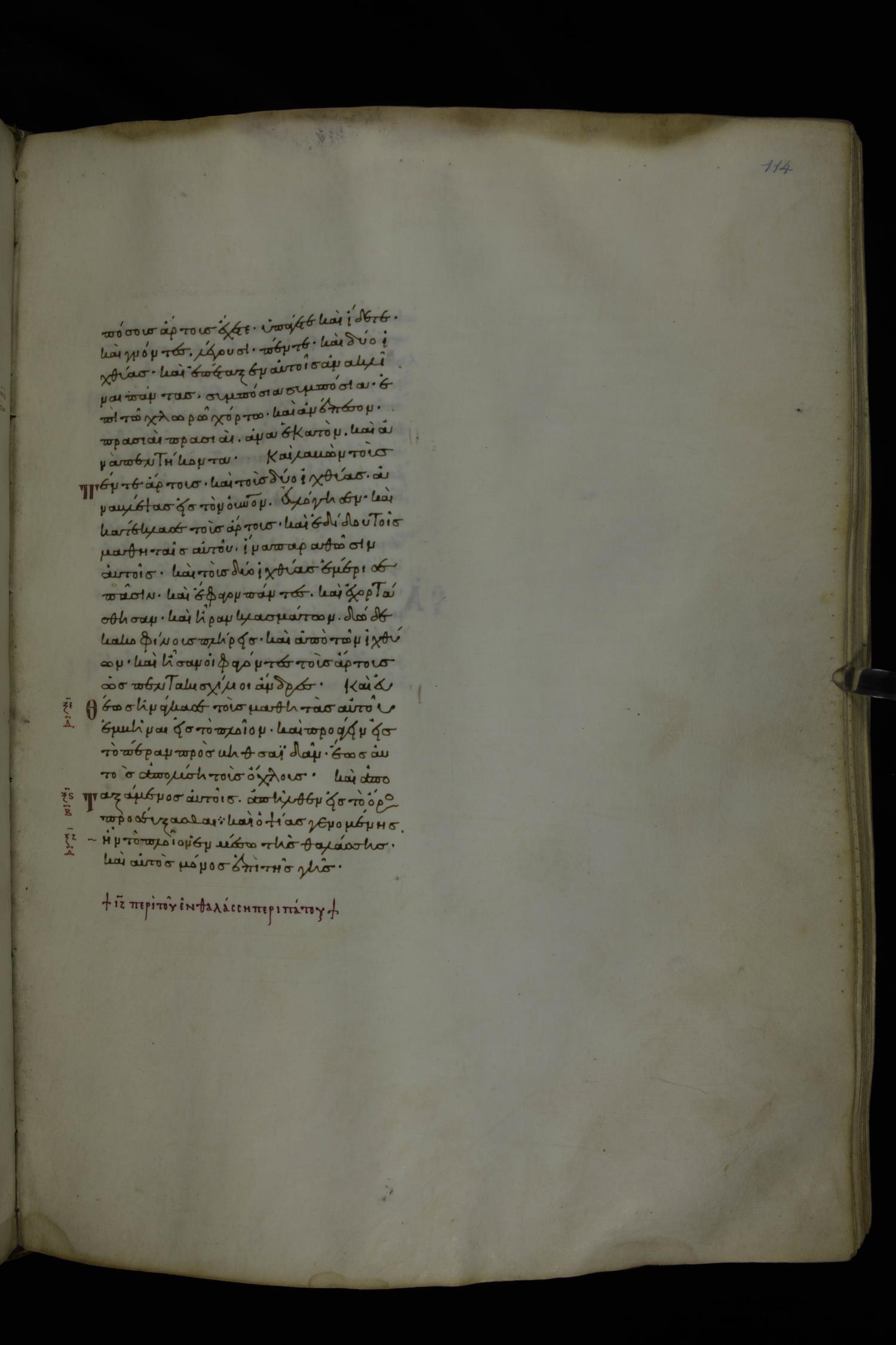 Tenth century minuscule of the Gospels with commentary; 285 leaves, 1 column, 4-34 lines per column. Images were taken at the National Library of Greece in Athens.