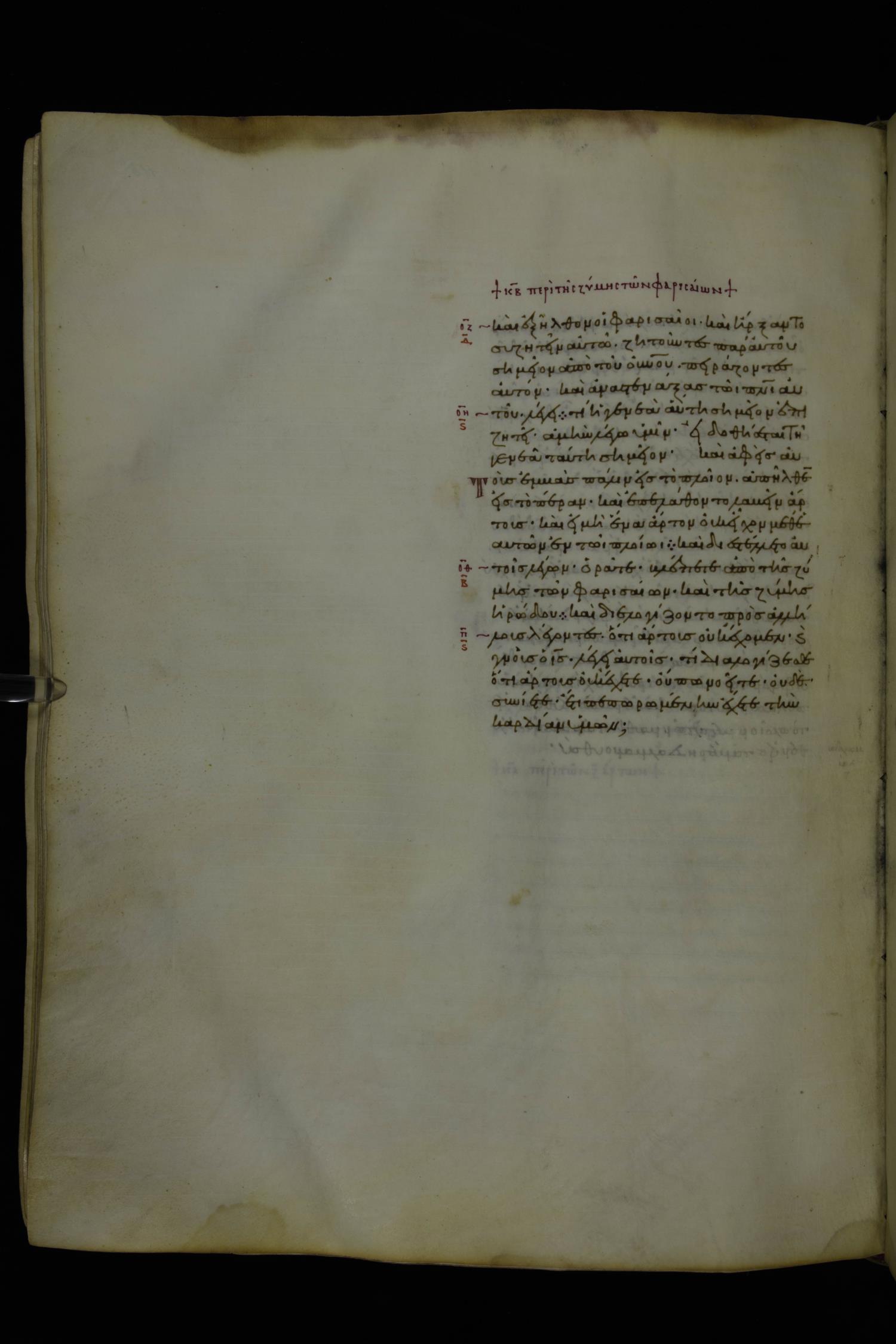 Καὶ ἐξῆλθον οἱ Φαρισαῖοι καὶ ἤρξαντο συνζητεῖν / συζητεῖν αὐτῷ, ζητοῦντες παρ´ αὐτοῦ σημεῖον ἀπὸ τοῦ οὐρανοῦ, πειράζοντες αὐτόν.
