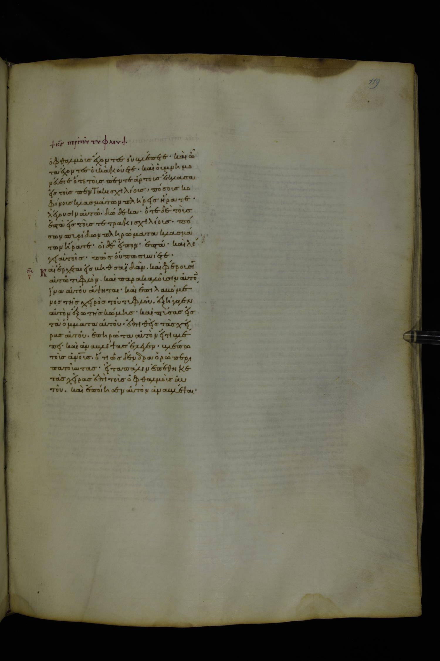 Tenth century minuscule of the Gospels with commentary; 285 leaves, 1 column, 4-34 lines per column. Images were taken at the National Library of Greece in Athens.
