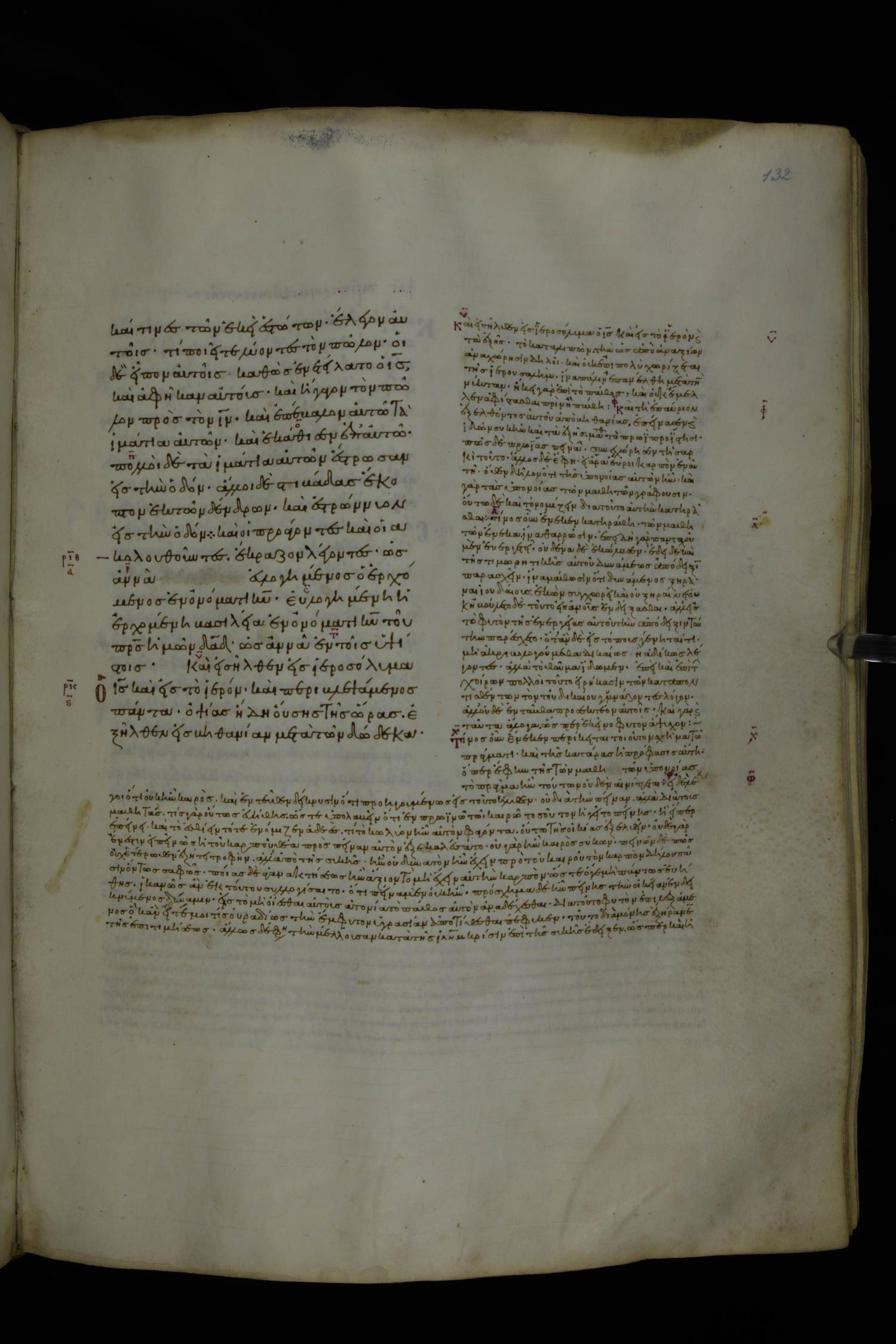 Tenth century minuscule of the Gospels with commentary; 285 leaves, 1 column, 4-34 lines per column. Images were taken at the National Library of Greece in Athens.