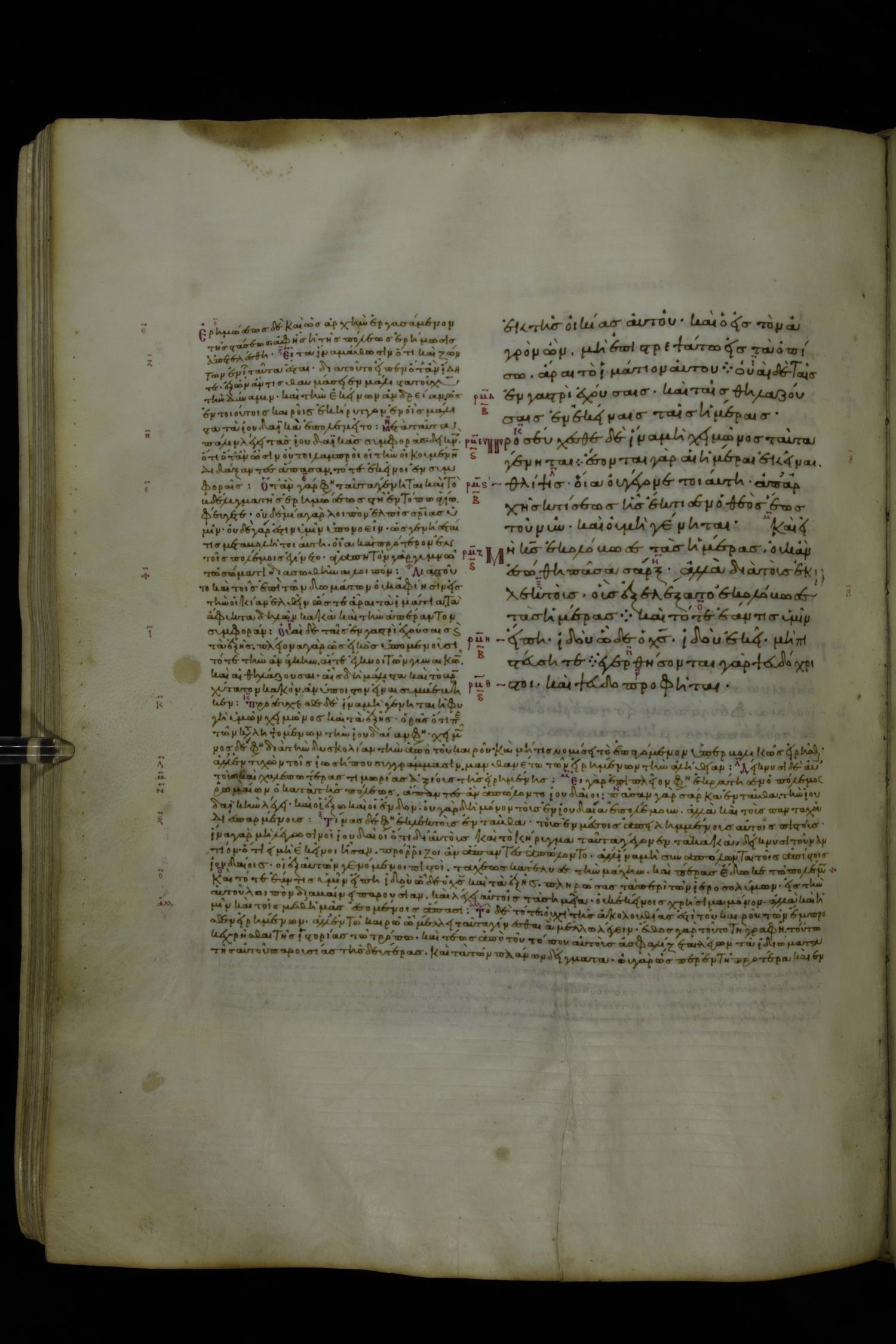 Tenth century minuscule of the Gospels with commentary; 285 leaves, 1 column, 4-34 lines per column. Images were taken at the National Library of Greece in Athens.