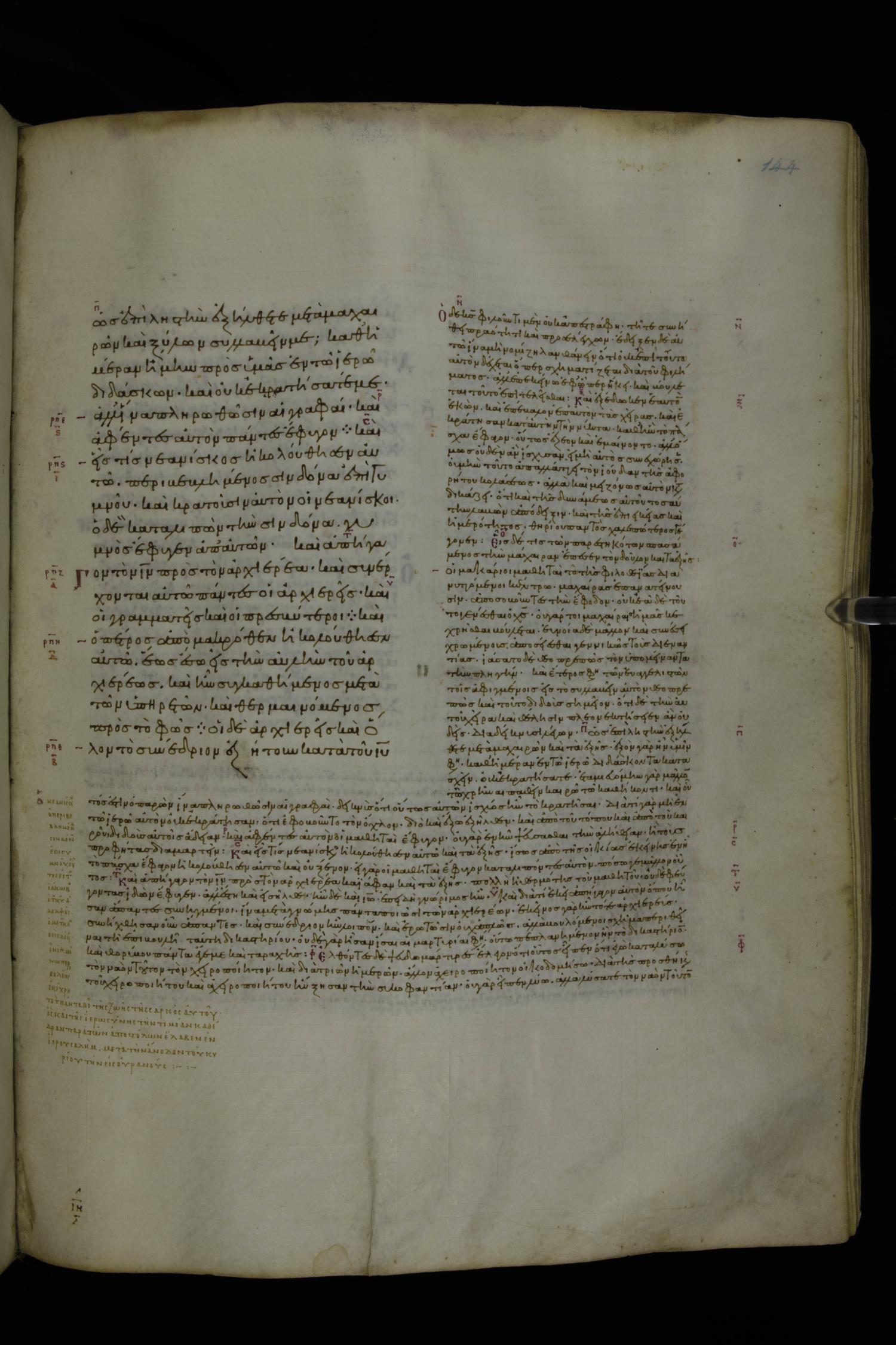 Tenth century minuscule of the Gospels with commentary; 285 leaves, 1 column, 4-34 lines per column. Images were taken at the National Library of Greece in Athens.