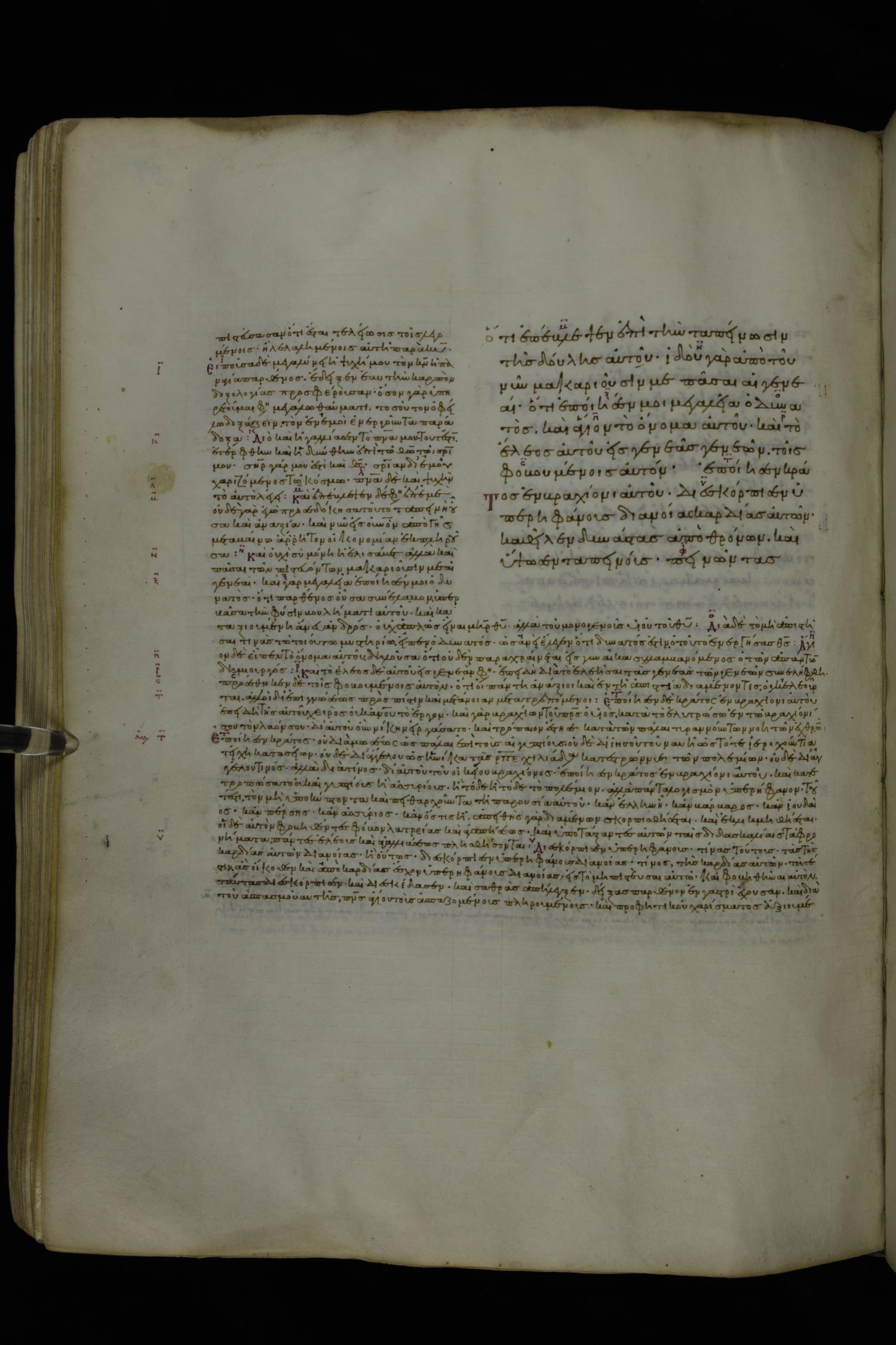Tenth century minuscule of the Gospels with commentary; 285 leaves, 1 column, 4-34 lines per column. Images were taken at the National Library of Greece in Athens.
