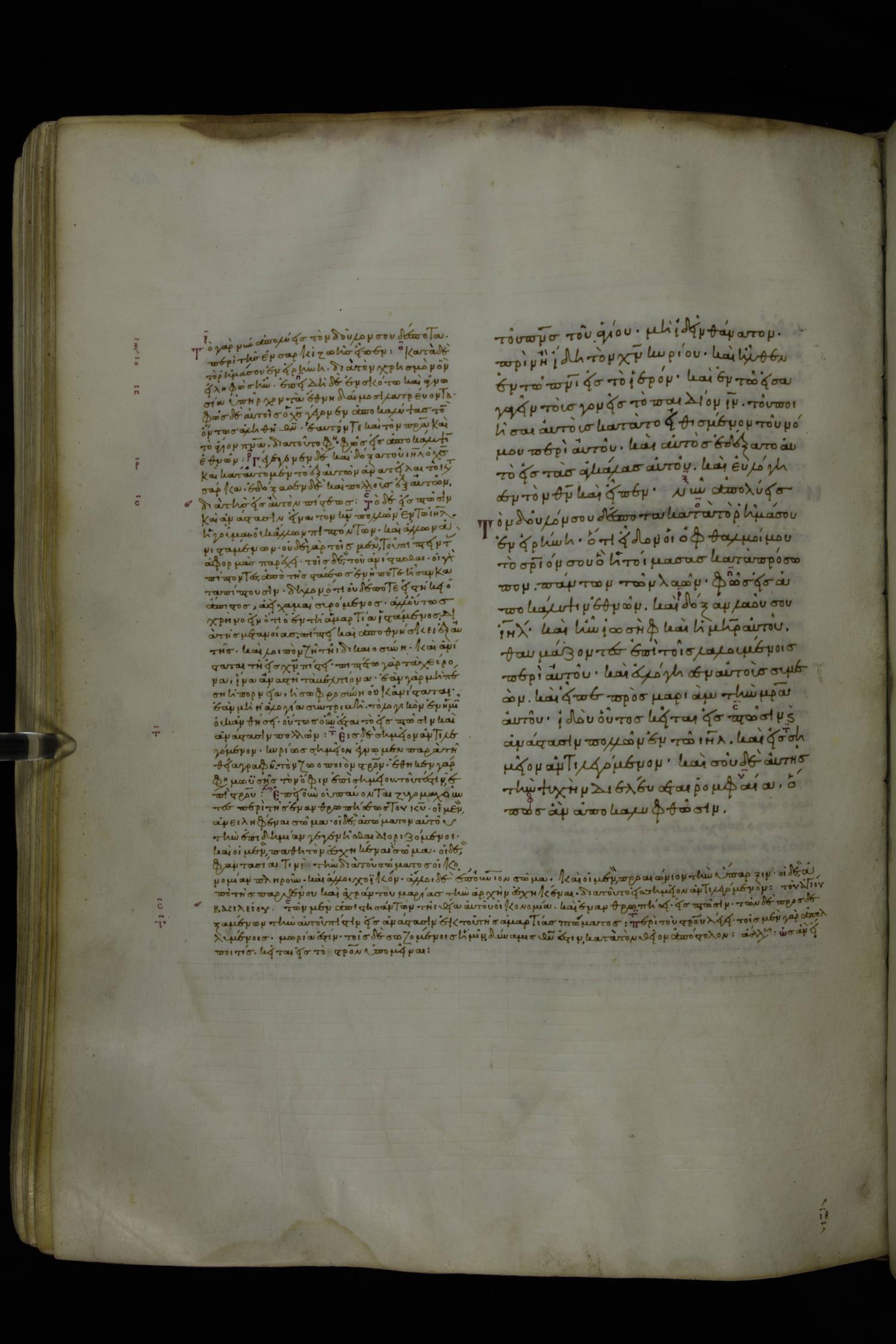 Tenth century minuscule of the Gospels with commentary; 285 leaves, 1 column, 4-34 lines per column. Images were taken at the National Library of Greece in Athens.