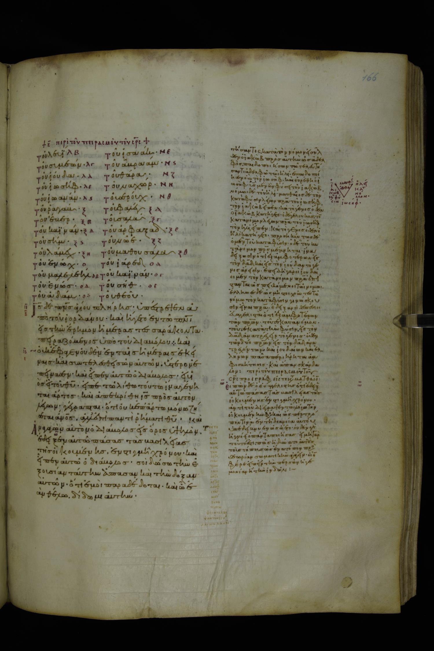 Tenth century minuscule of the Gospels with commentary; 285 leaves, 1 column, 4-34 lines per column. Images were taken at the National Library of Greece in Athens.