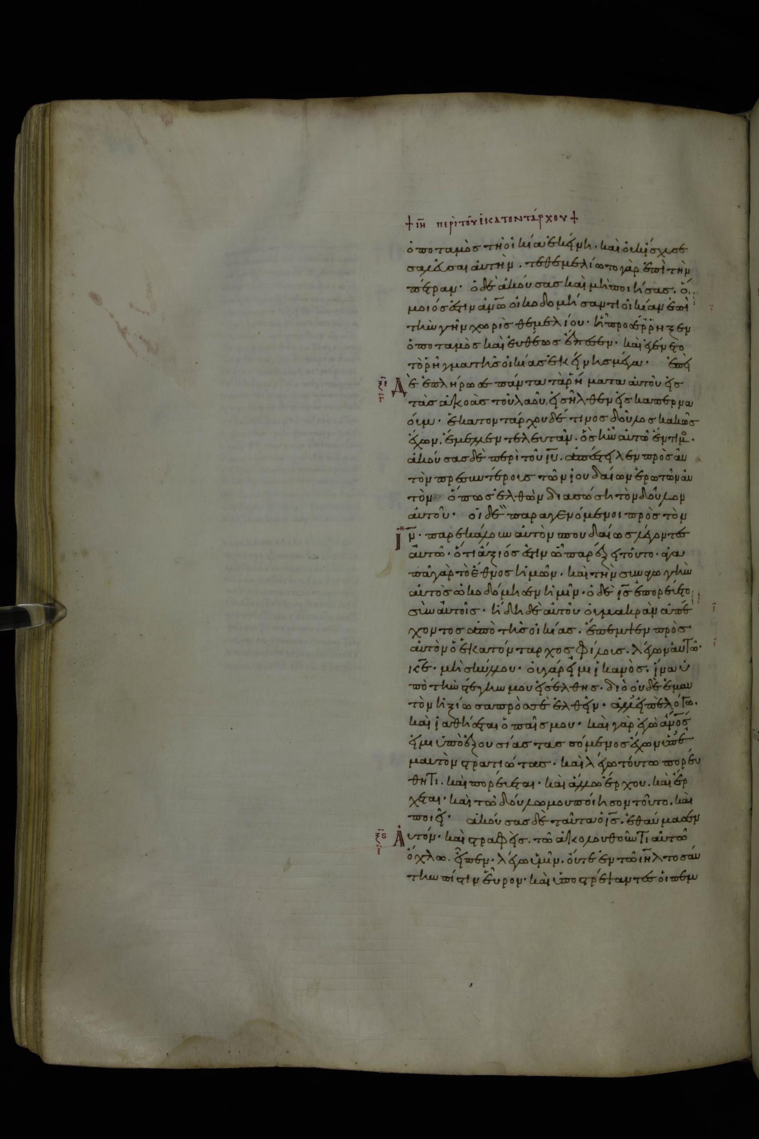 Tenth century minuscule of the Gospels with commentary; 285 leaves, 1 column, 4-34 lines per column. Images were taken at the National Library of Greece in Athens.