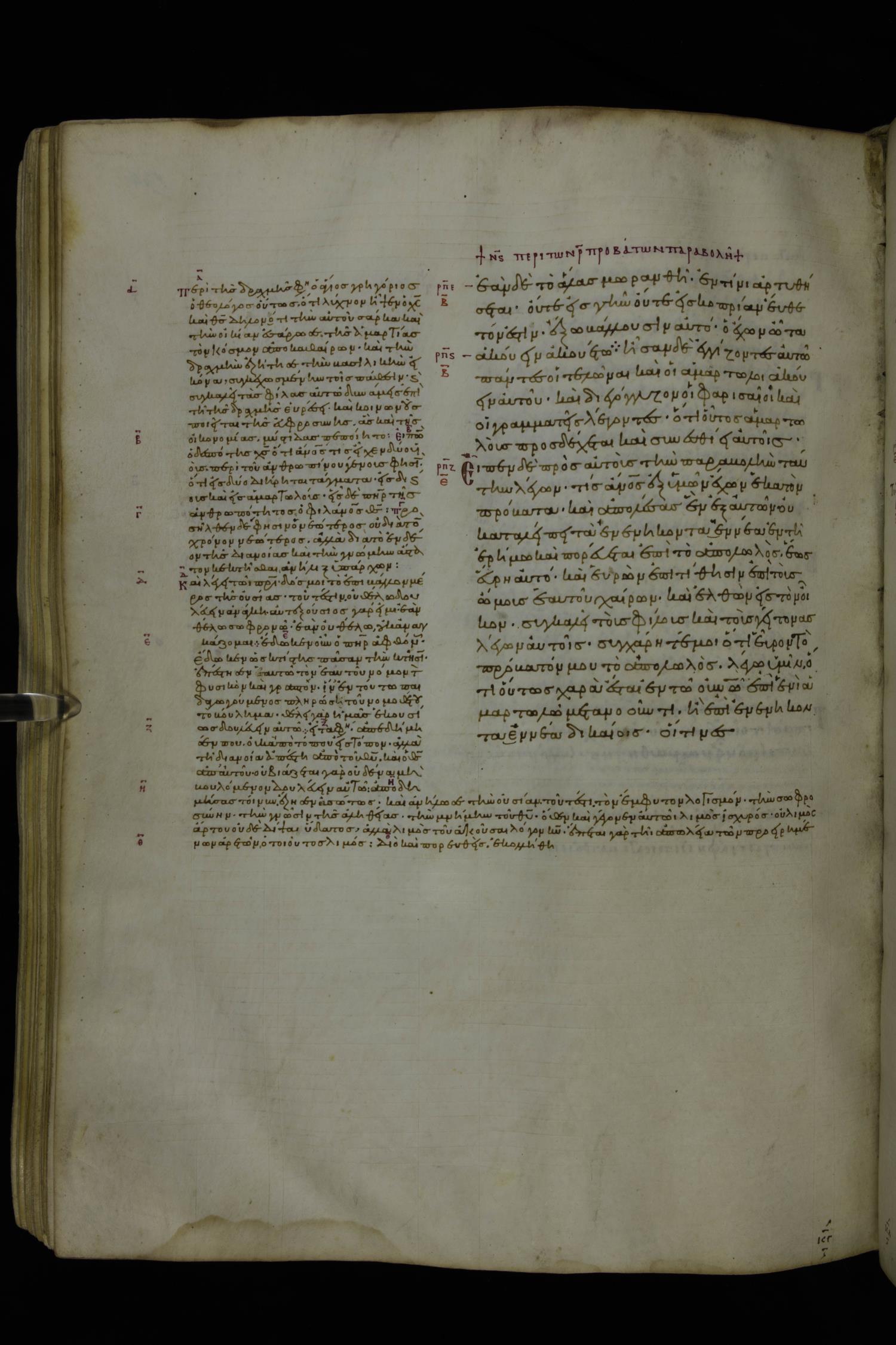 Tenth century minuscule of the Gospels with commentary; 285 leaves, 1 column, 4-34 lines per column. Images were taken at the National Library of Greece in Athens.