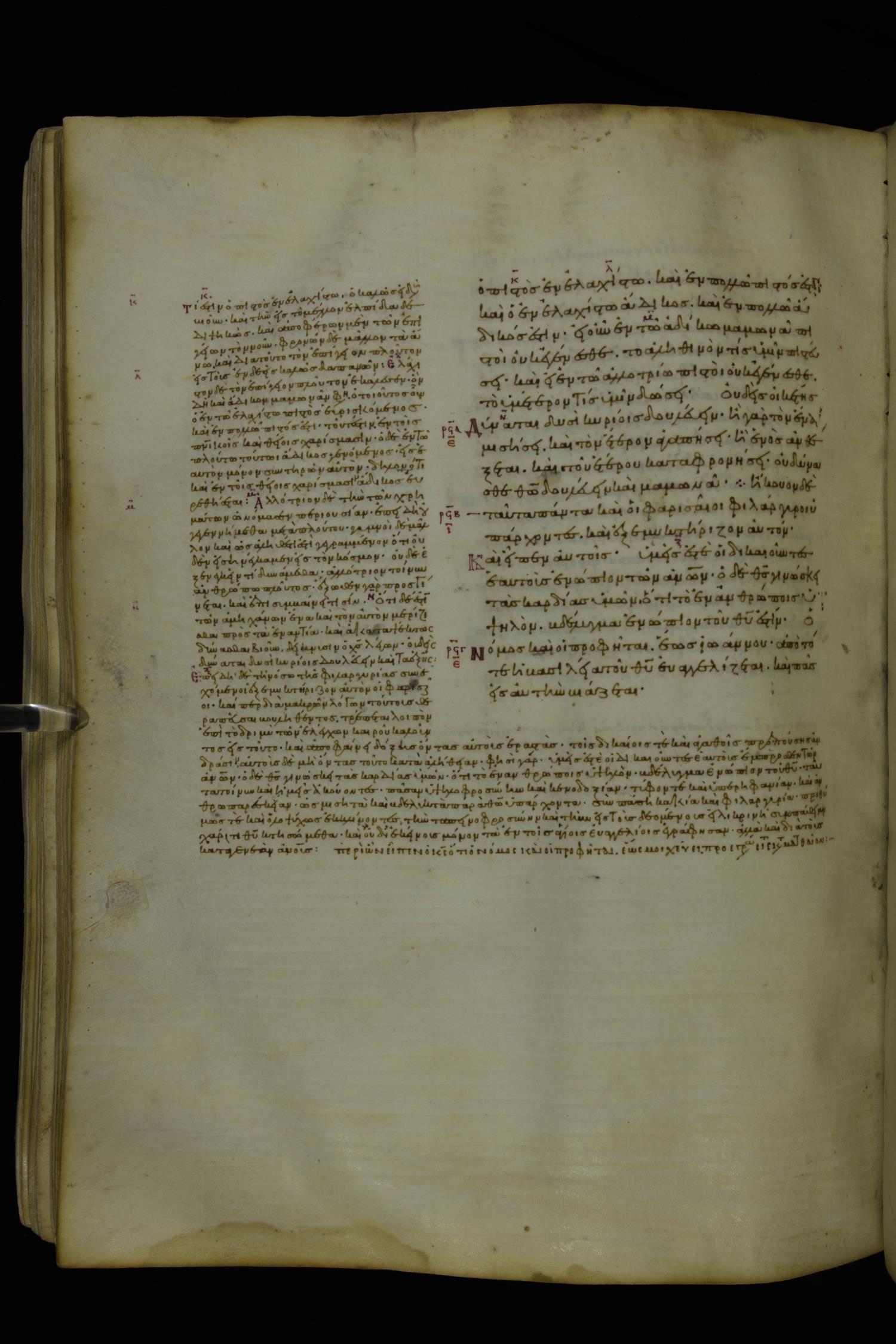 Tenth century minuscule of the Gospels with commentary; 285 leaves, 1 column, 4-34 lines per column. Images were taken at the National Library of Greece in Athens.