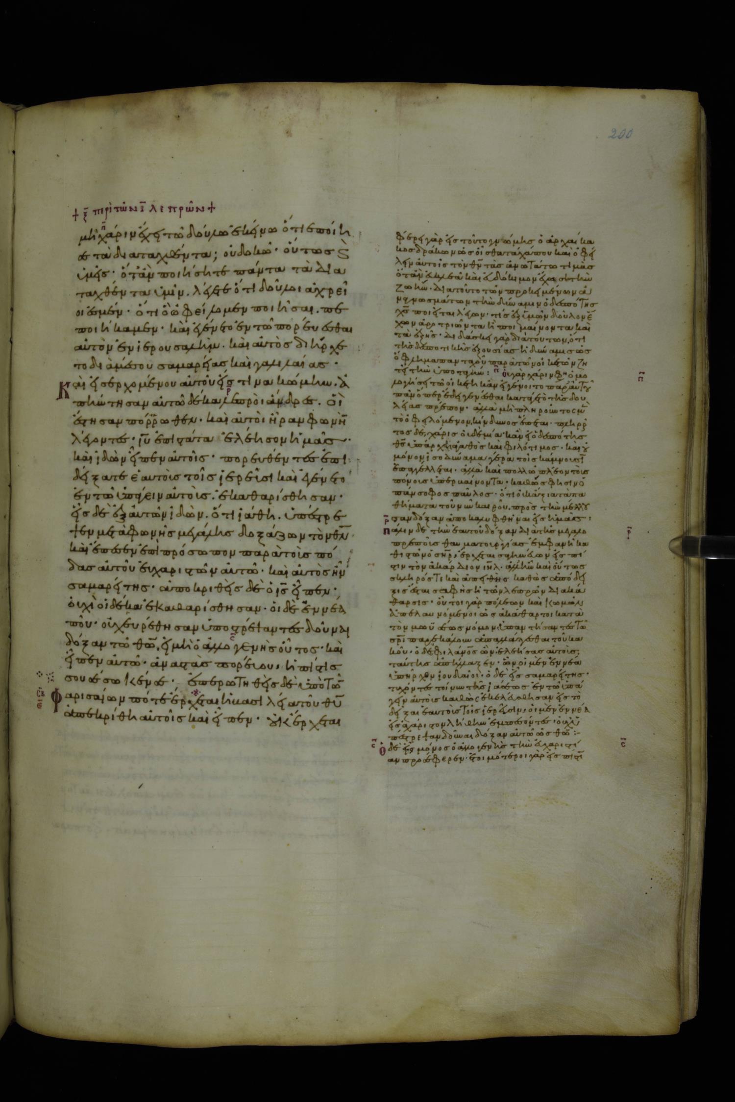Tenth century minuscule of the Gospels with commentary; 285 leaves, 1 column, 4-34 lines per column. Images were taken at the National Library of Greece in Athens.