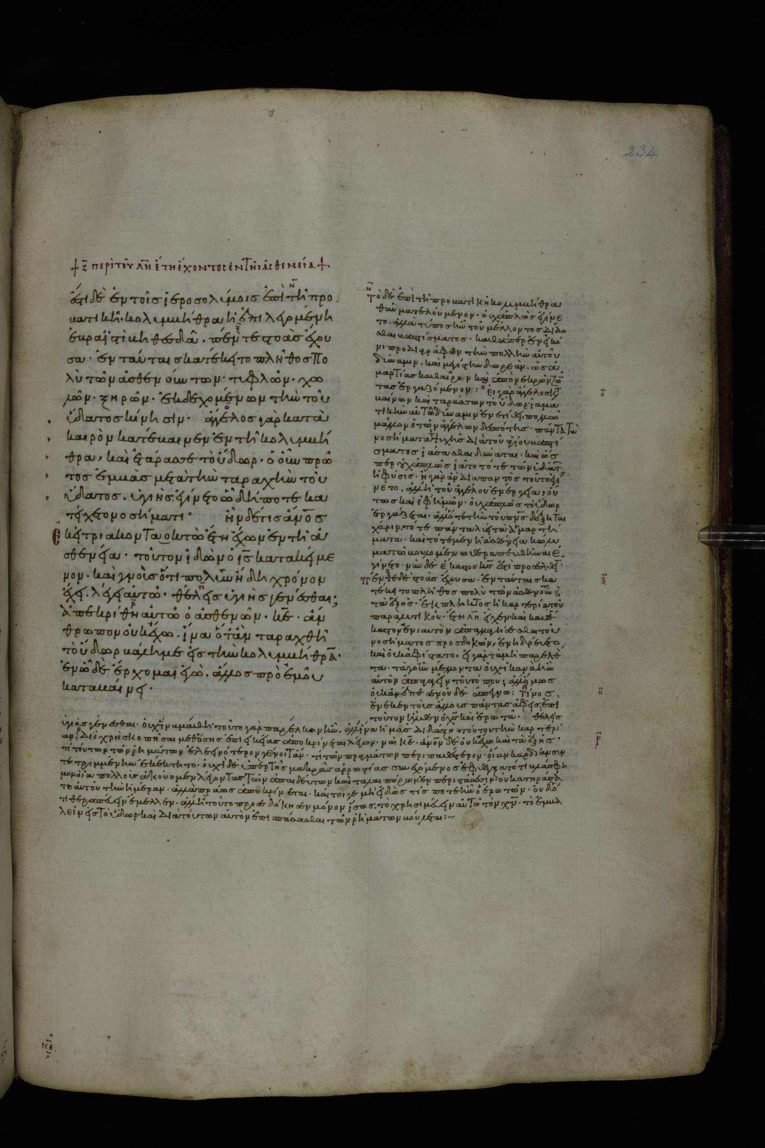 Tenth century minuscule of the Gospels with commentary; 285 leaves, 1 column, 4-34 lines per column. Images were taken at the National Library of Greece in Athens.