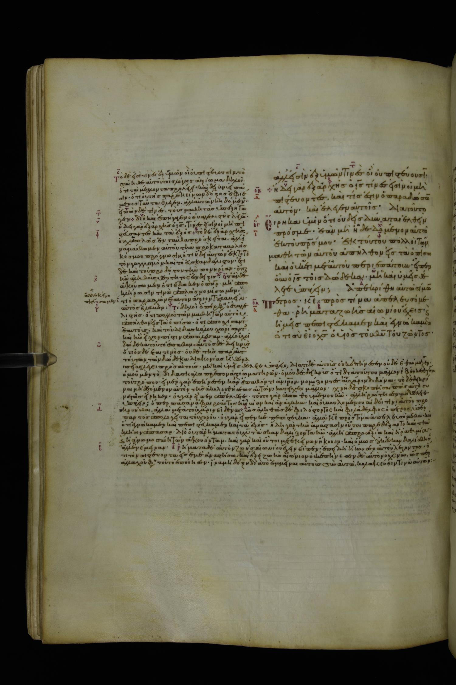Tenth century minuscule of the Gospels with commentary; 285 leaves, 1 column, 4-34 lines per column. Images were taken at the National Library of Greece in Athens.