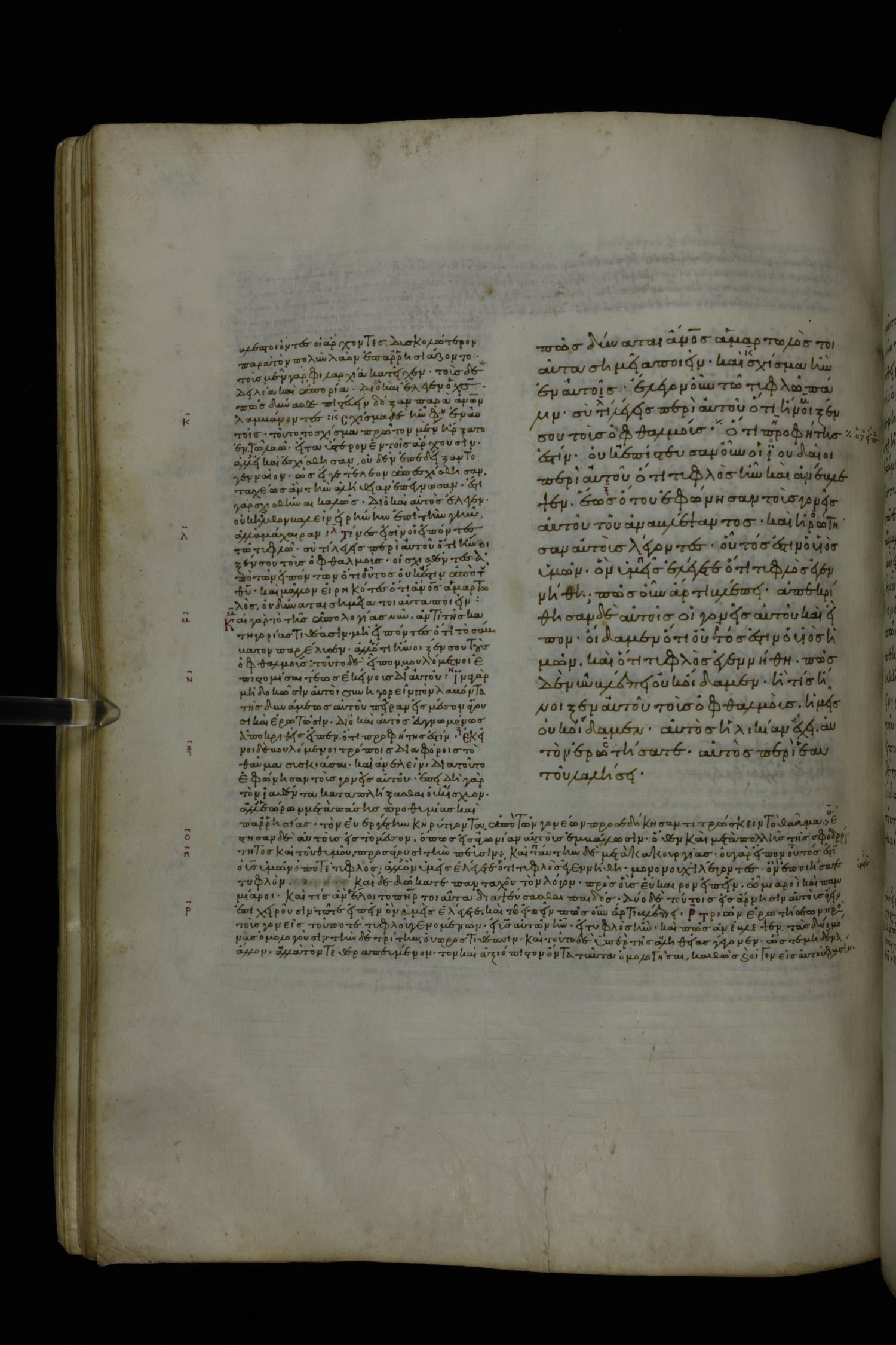Tenth century minuscule of the Gospels with commentary; 285 leaves, 1 column, 4-34 lines per column. Images were taken at the National Library of Greece in Athens.