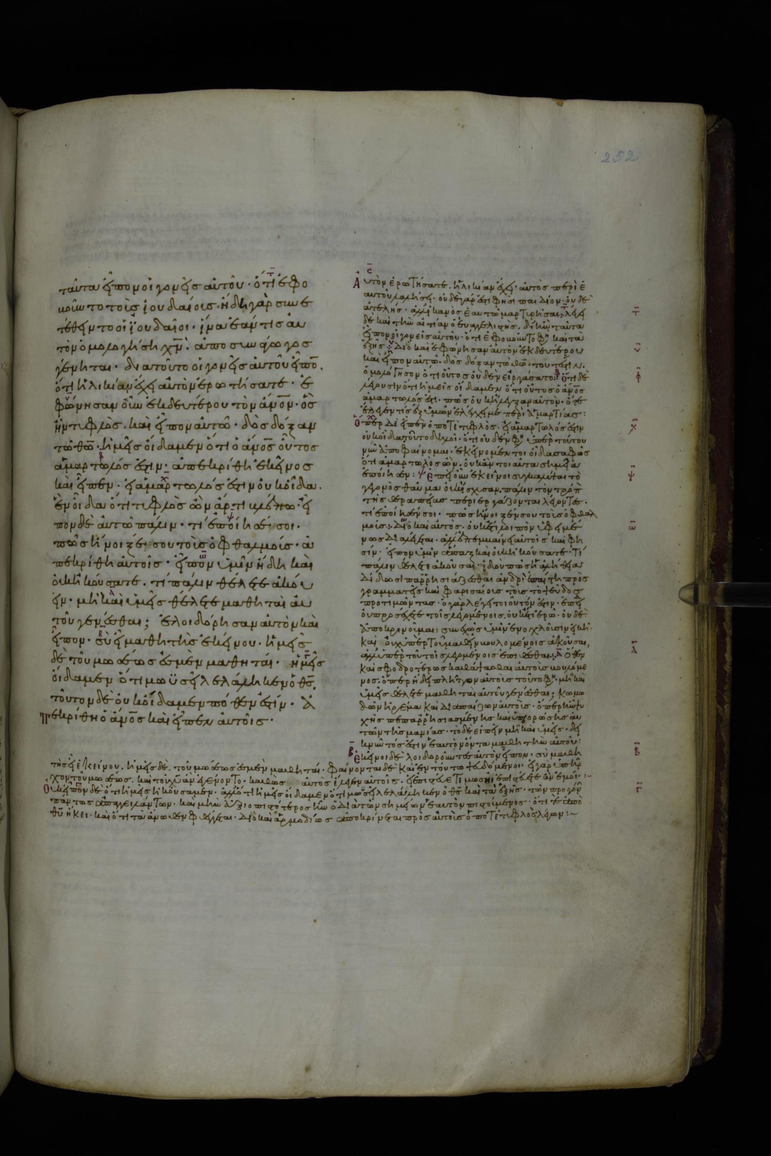 Tenth century minuscule of the Gospels with commentary; 285 leaves, 1 column, 4-34 lines per column. Images were taken at the National Library of Greece in Athens.