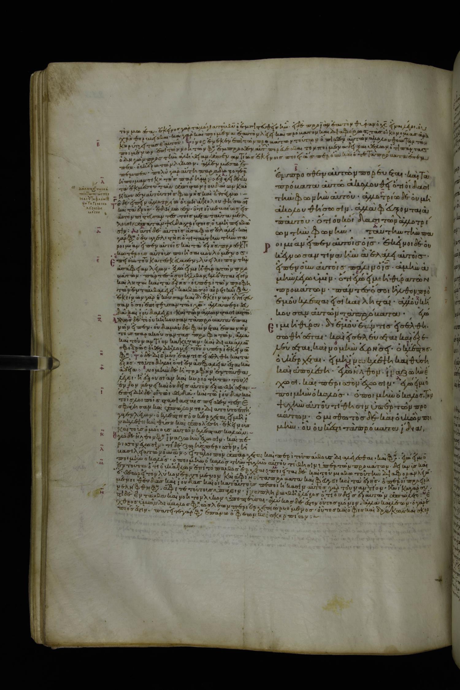 Tenth century minuscule of the Gospels with commentary; 285 leaves, 1 column, 4-34 lines per column. Images were taken at the National Library of Greece in Athens.