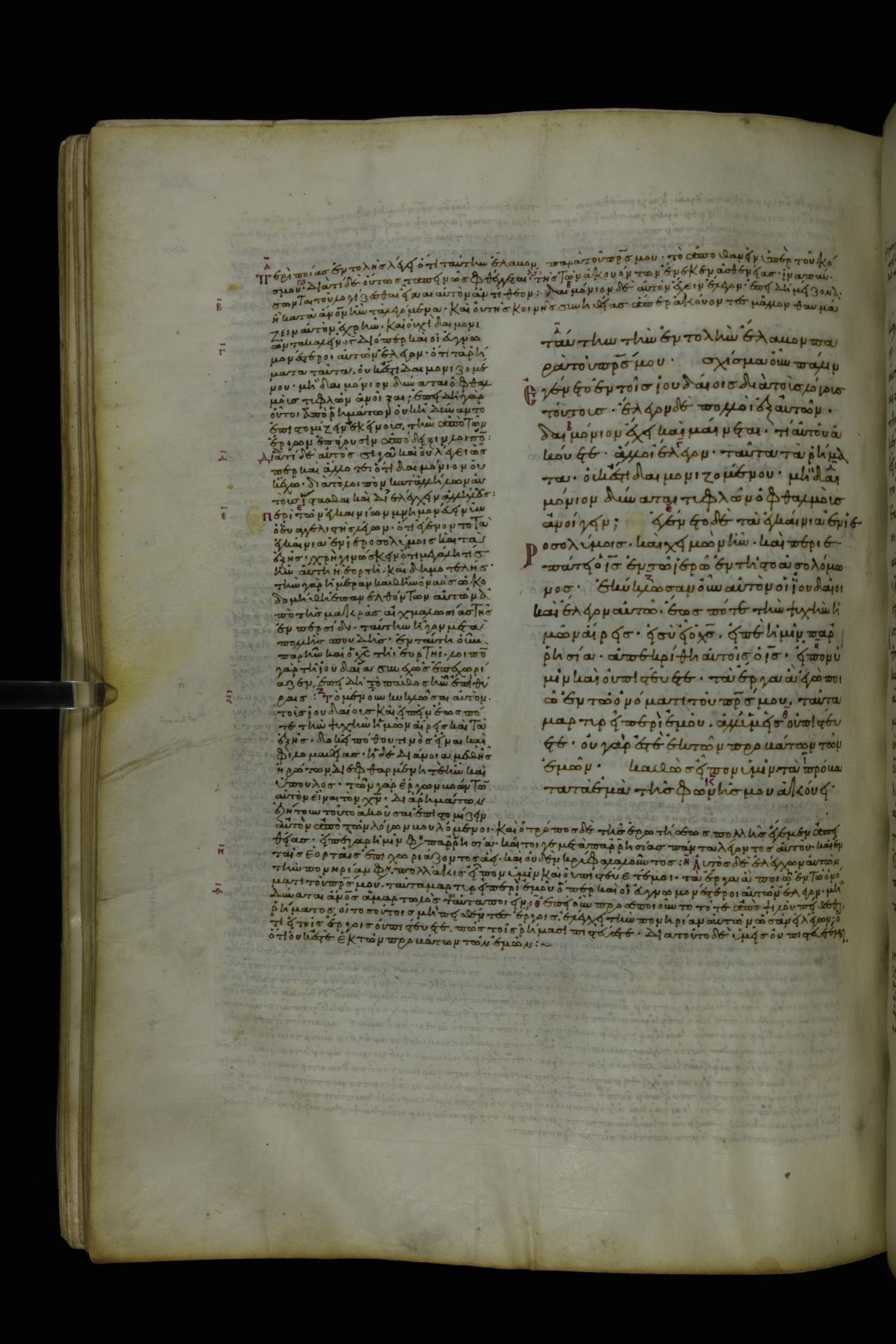 Tenth century minuscule of the Gospels with commentary; 285 leaves, 1 column, 4-34 lines per column. Images were taken at the National Library of Greece in Athens.