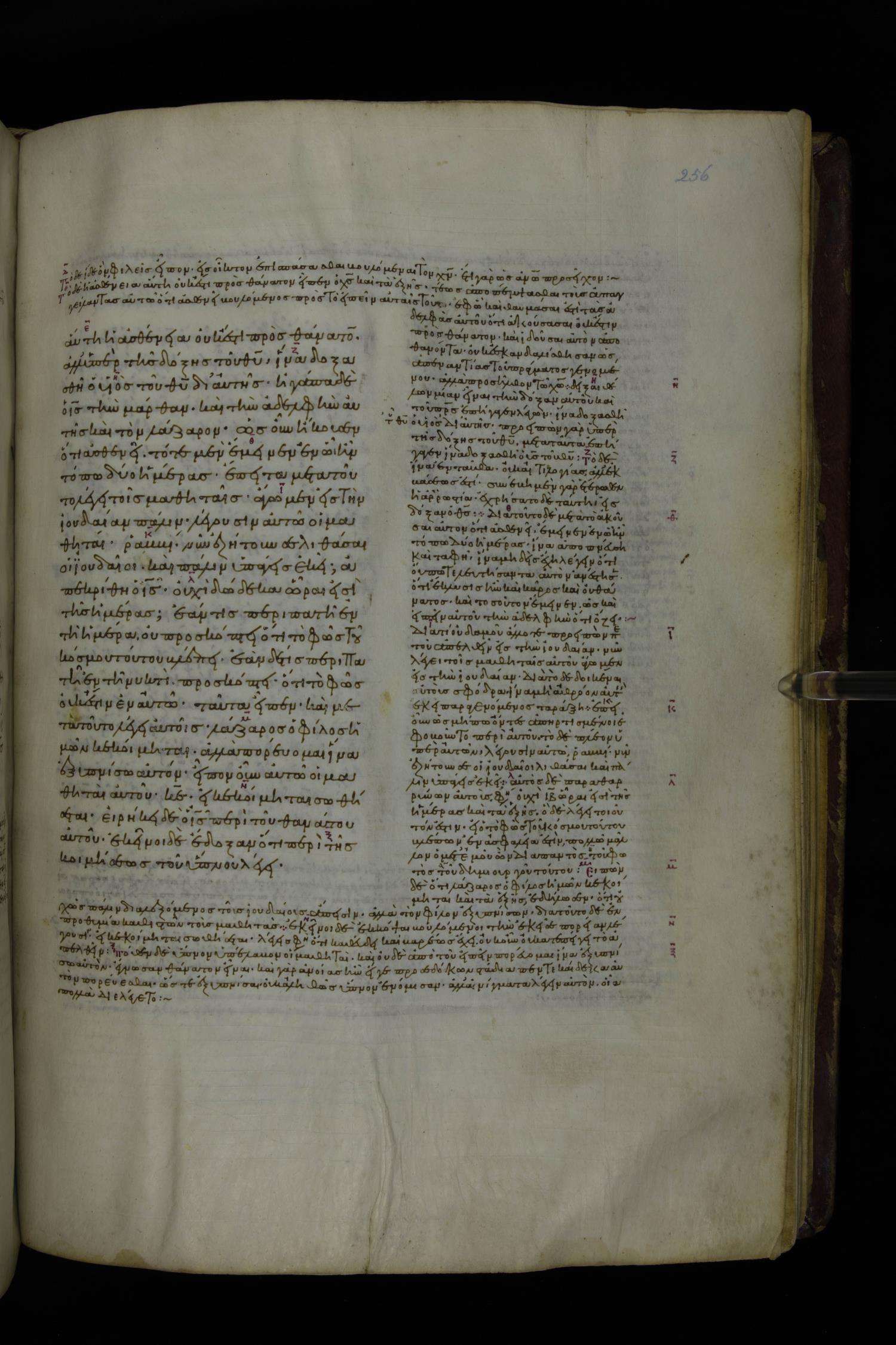 Tenth century minuscule of the Gospels with commentary; 285 leaves, 1 column, 4-34 lines per column. Images were taken at the National Library of Greece in Athens.
