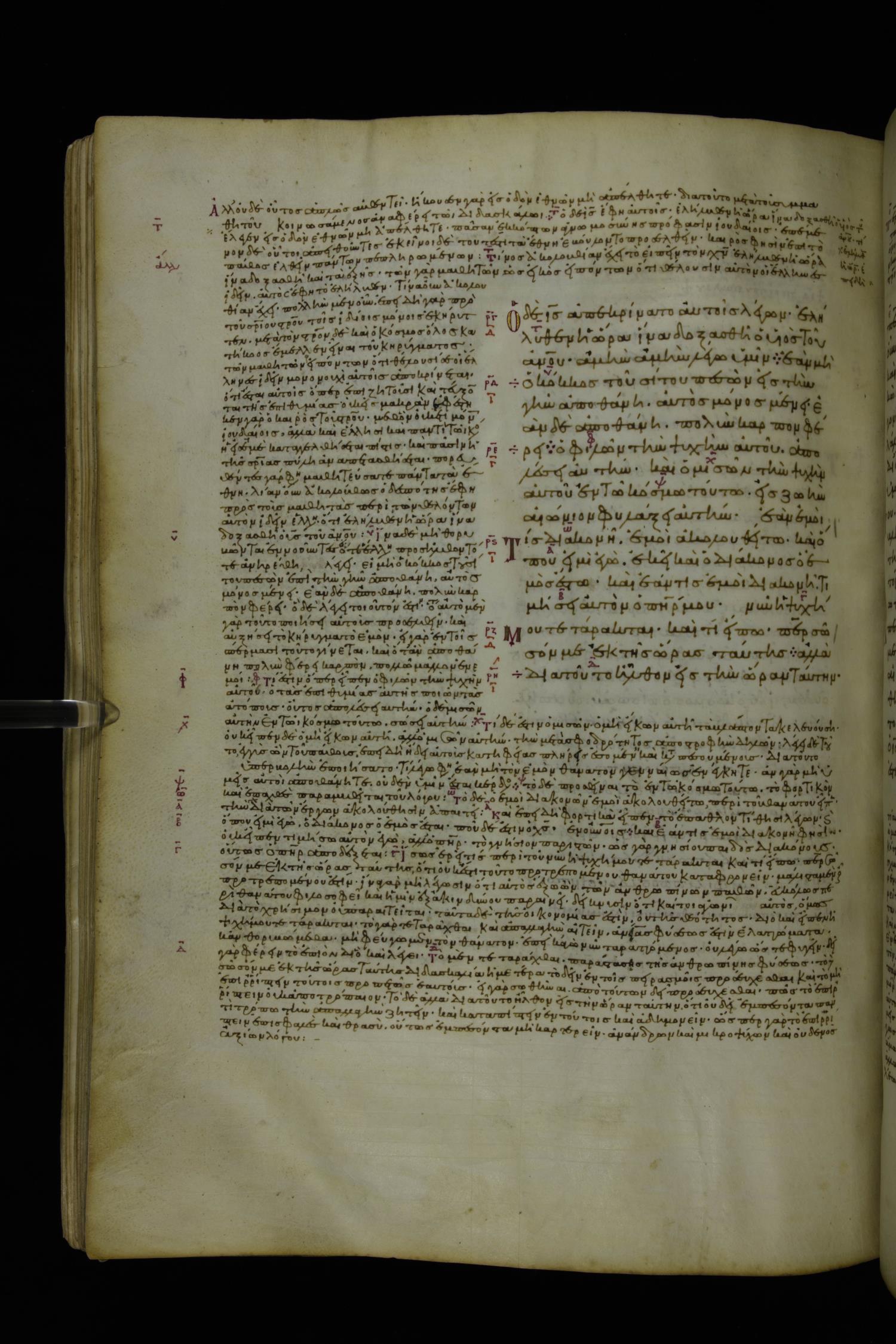 Tenth century minuscule of the Gospels with commentary; 285 leaves, 1 column, 4-34 lines per column. Images were taken at the National Library of Greece in Athens.