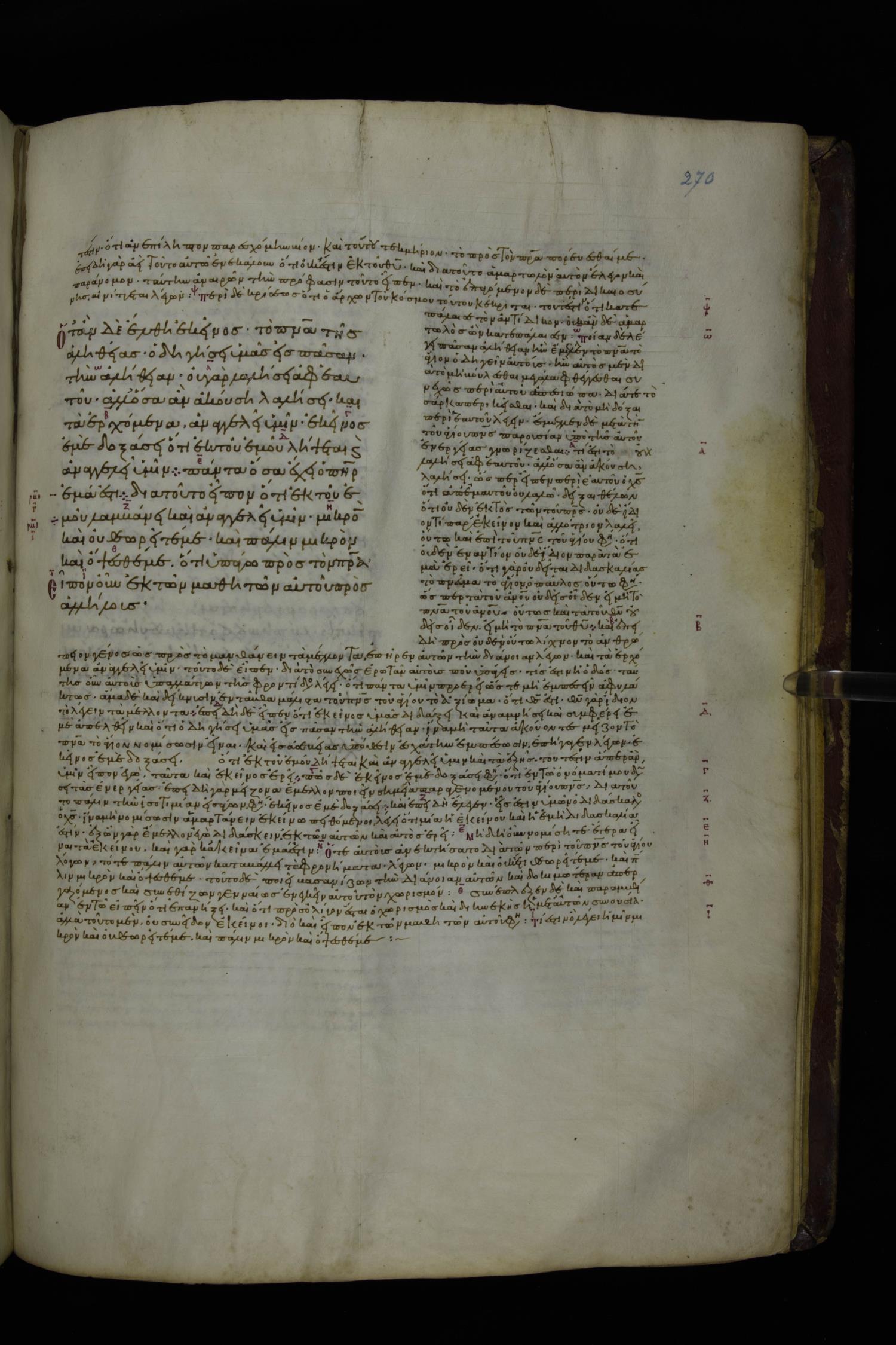 Tenth century minuscule of the Gospels with commentary; 285 leaves, 1 column, 4-34 lines per column. Images were taken at the National Library of Greece in Athens.