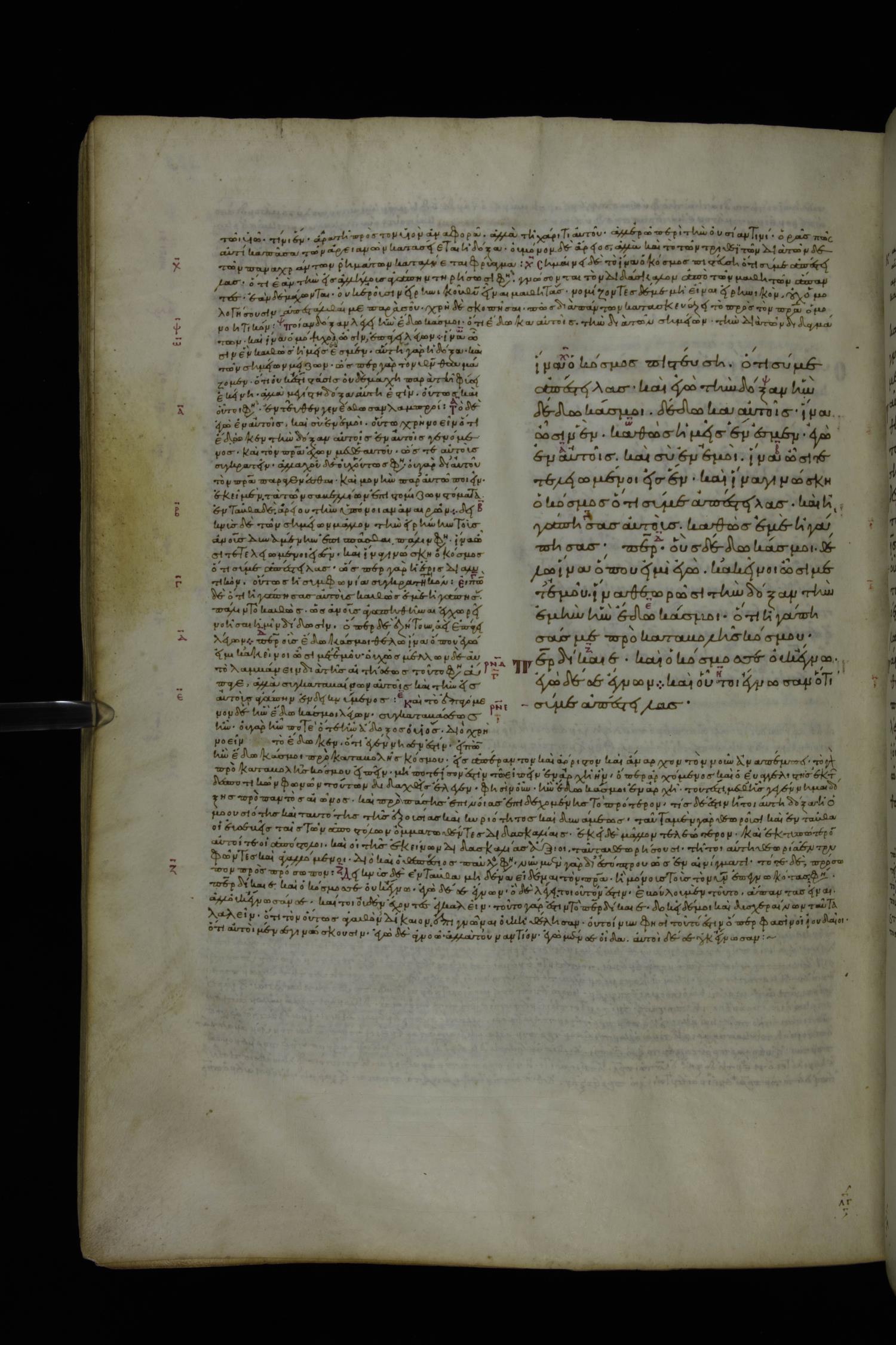 Tenth century minuscule of the Gospels with commentary; 285 leaves, 1 column, 4-34 lines per column. Images were taken at the National Library of Greece in Athens.